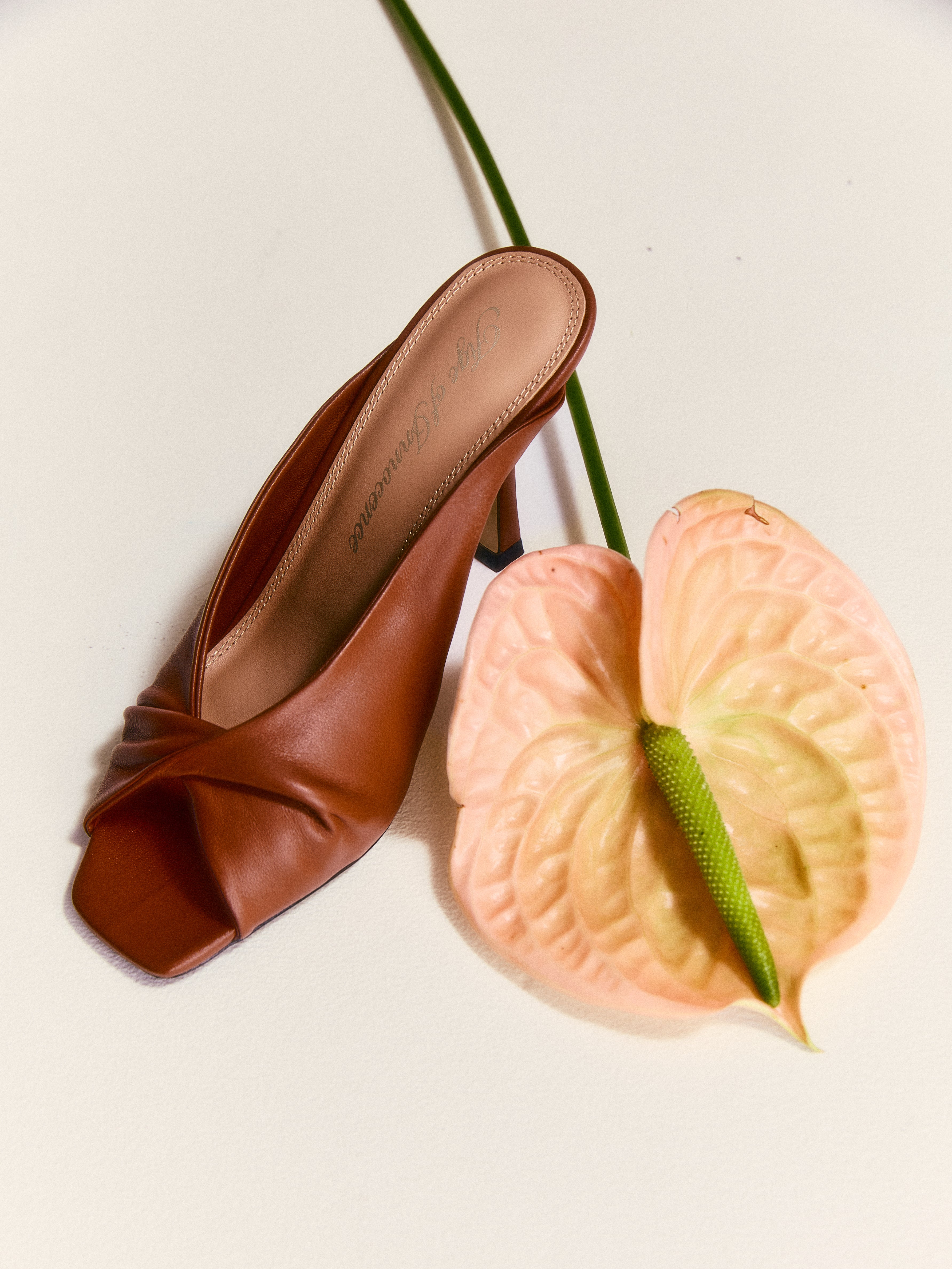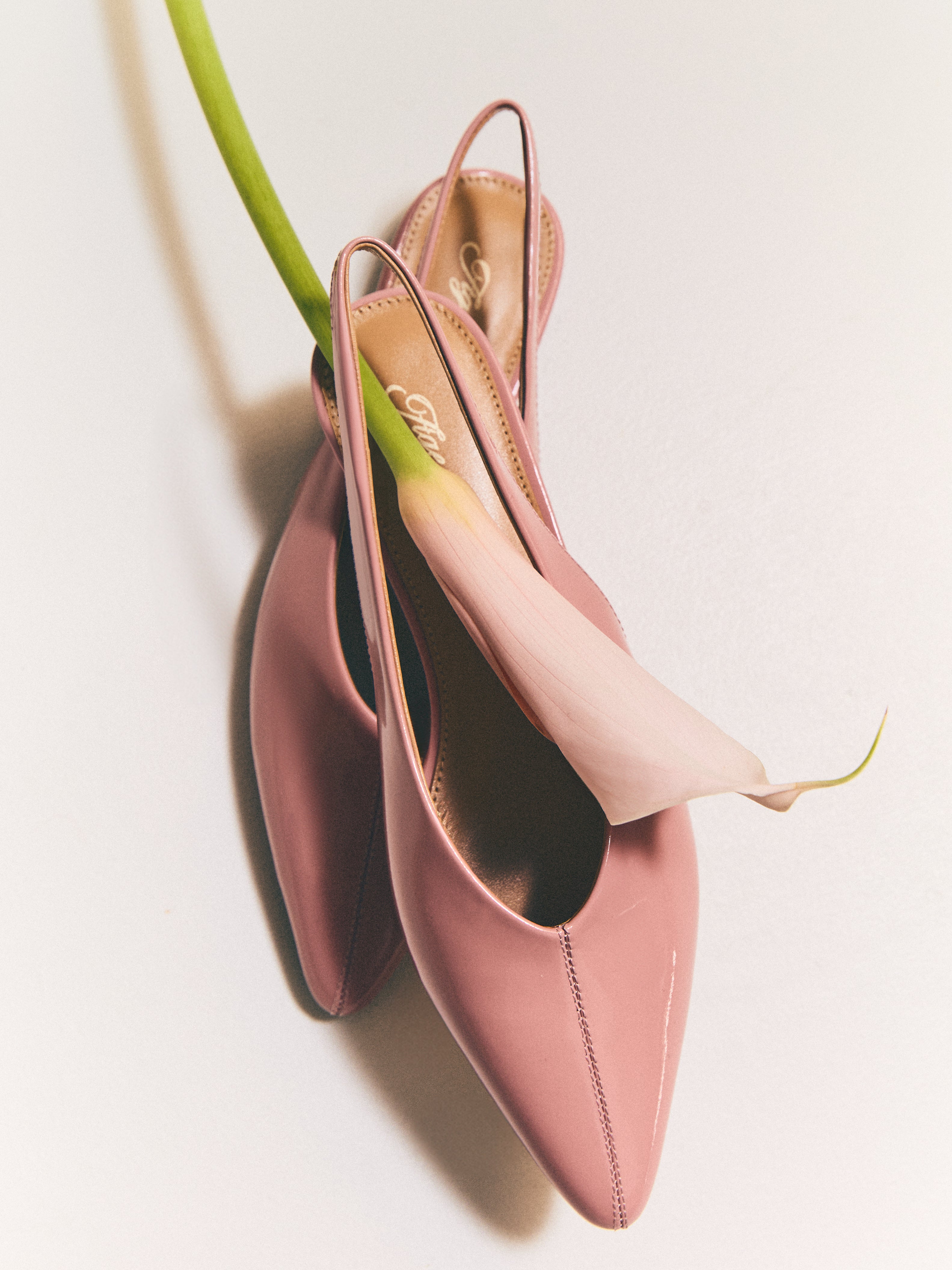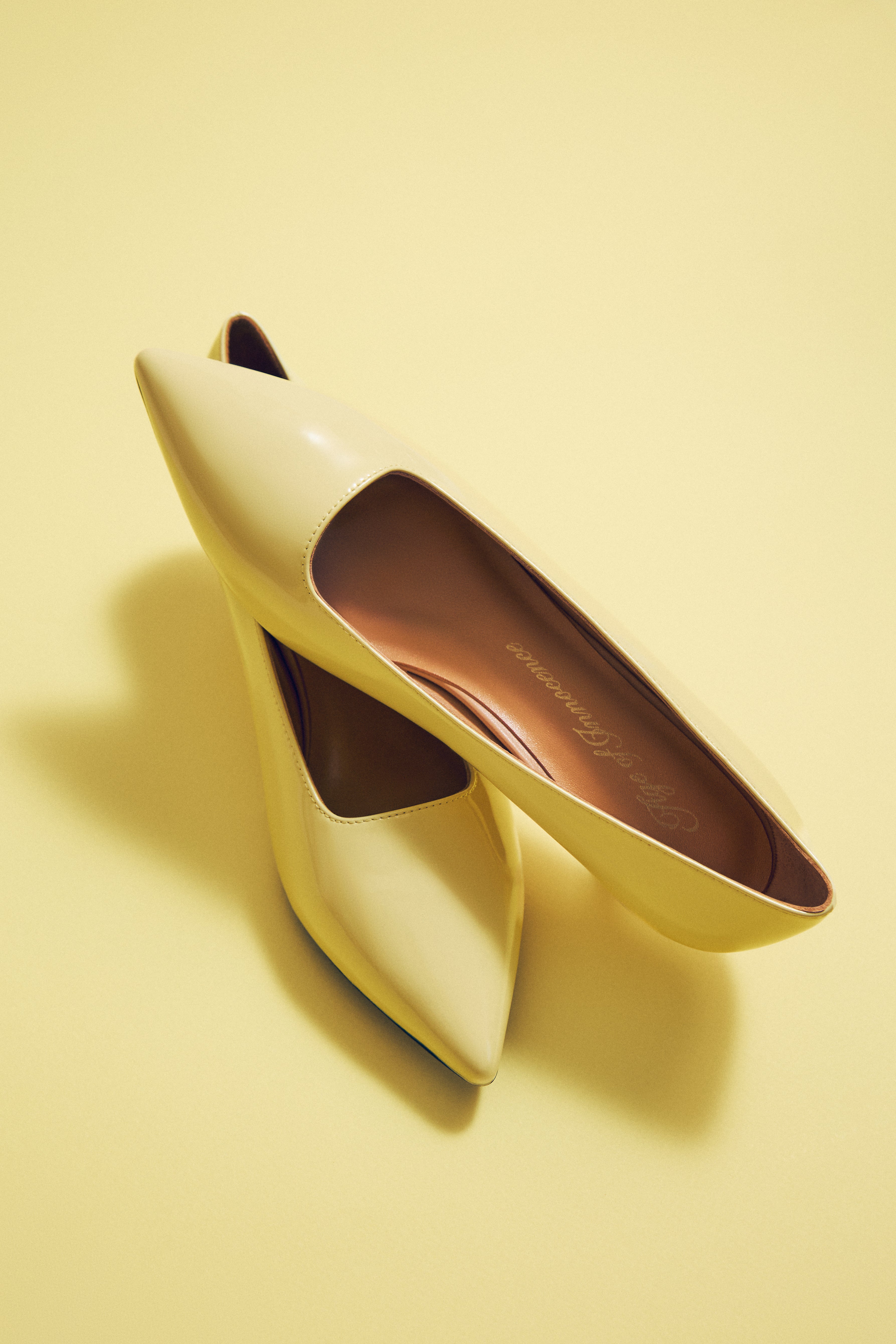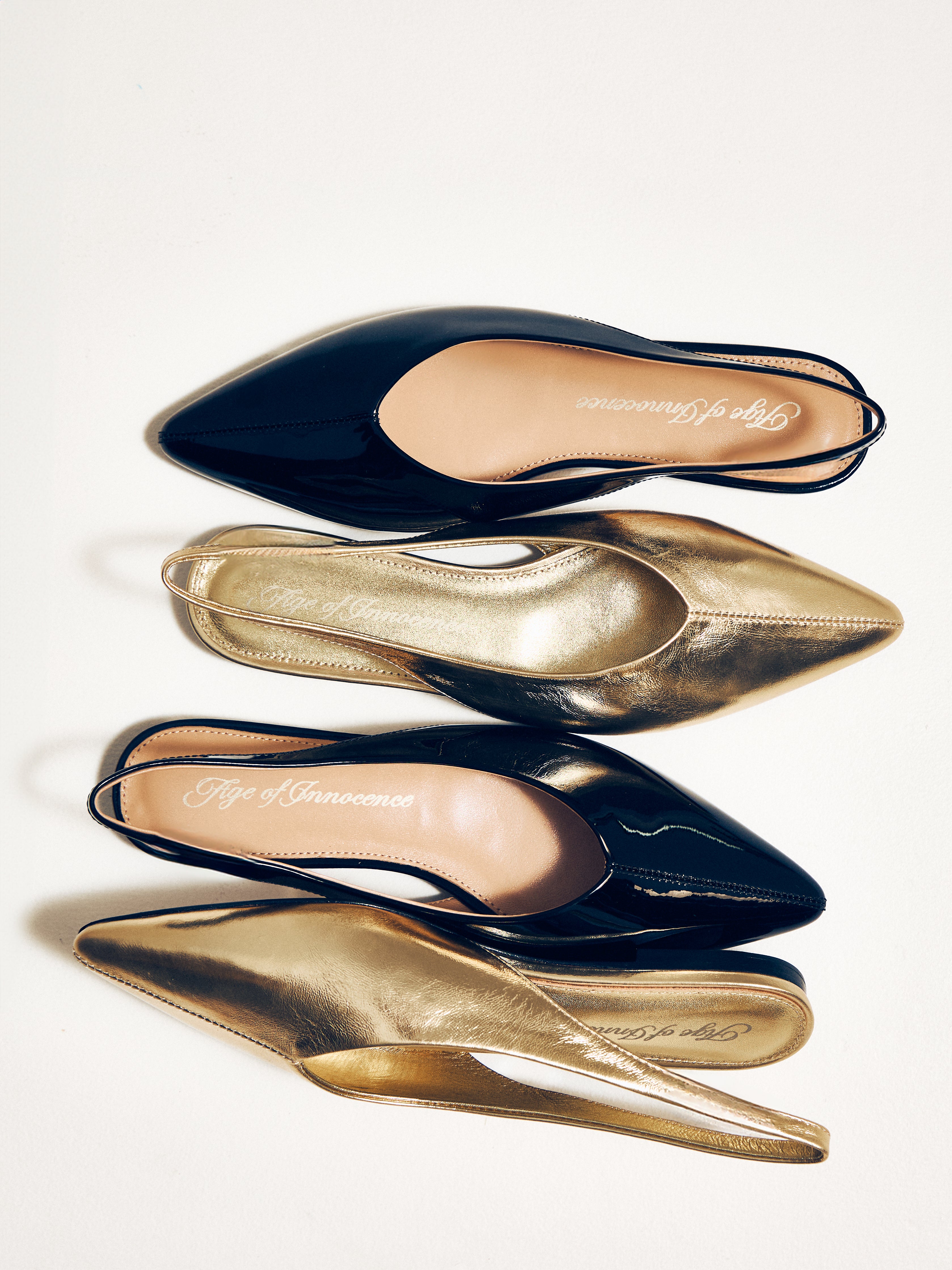Мюли на каблуке и без, балетки на плоской подошве с зауженным носом и минималистичные босоножки, элегантные лодочки и бархатные слингбэки — коллекция получилась яркой во всех смыслах.