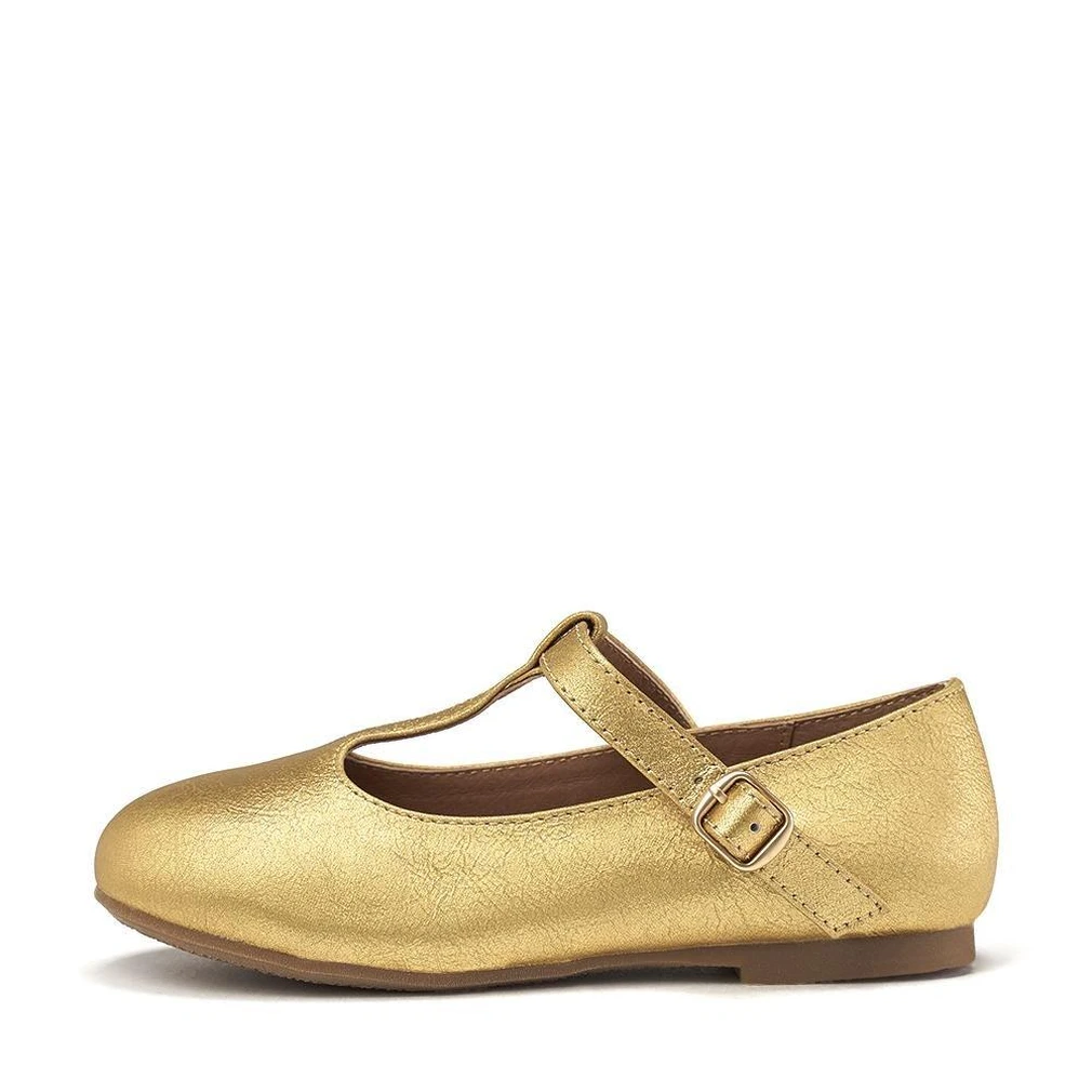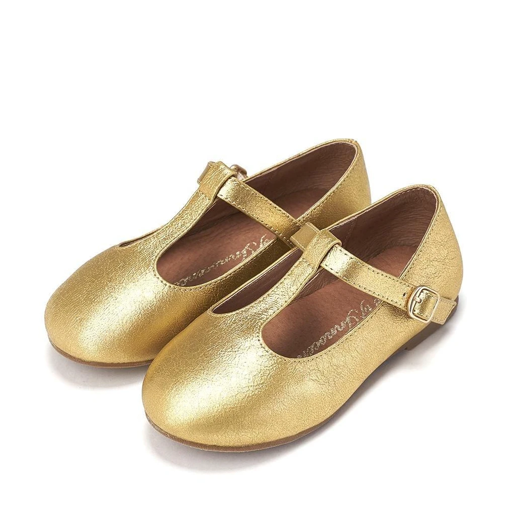 Туфли Abigail из фактурной мягкой золотой кожи с Т-образным ремешком выполнены в столь любимом брендом ретро-стиле Мэри Джейн. Но несмотря на расцветку и необычную стилистику, модель получилась достаточно универсальной и к тому же очень удобной. Эти туфли будут одинаково уместны как с черным бархатным платьем для похода в театр, так и с классическими джинсами для встречи с подружкой.