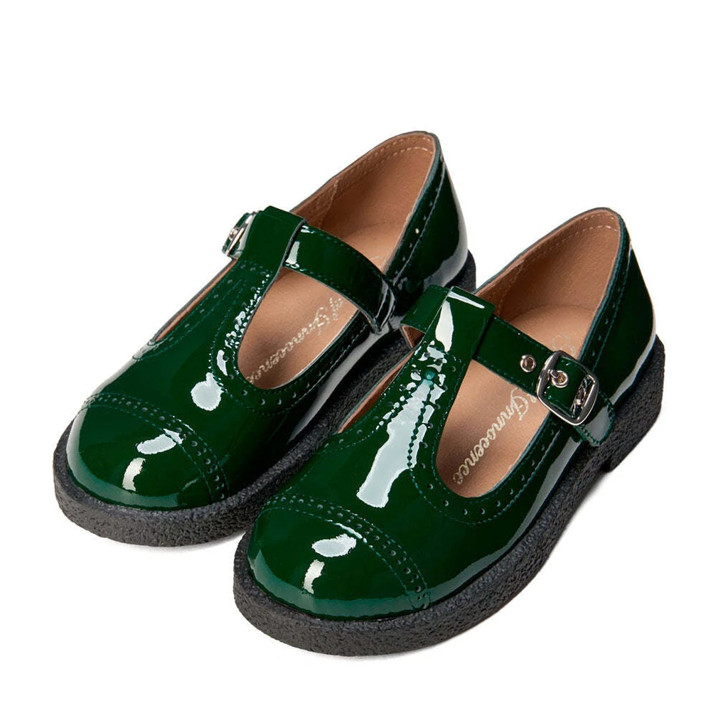 Если и существует идеальная «школьная» модель обуви, то без сомнений это именно она. Натуральная лакированная кожа, стильная и удобная Т-образная застежка-ремешок, декоративная перфорация и высокая подошва «на манке» — знакомьтесь, перед вами наши новые, идеальные туфли по имени Agathe для самых прилежных учениц. Туфельки застегиваются на удобный ремешок с застежкой велькро.