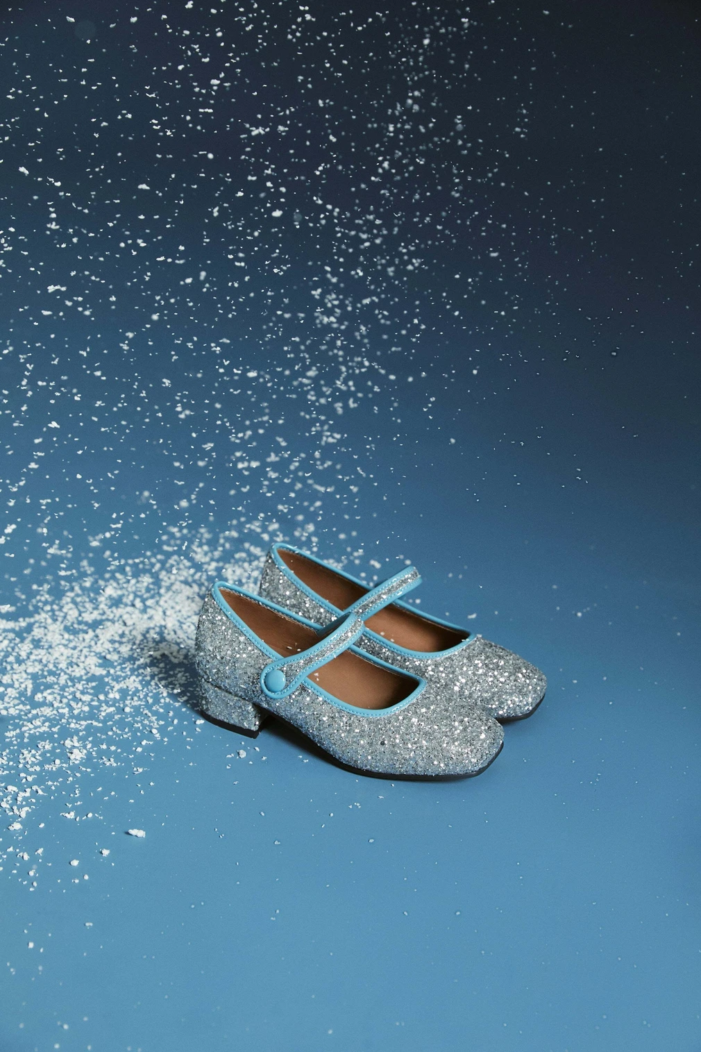 В этих туфельках есть абсолютно все, чтобы мы с полной уверенностью смогли отнести их к стилю "гламурный шик". Кожаные внутри и покрытые серебряным глитером снаружи, на каблучке, с квадратным носиком и ремешком аля Mary Jane они кажутся почти игрушечными. Особенную прелесть этой модели придает контрастный кожаный кант. Даже не знаем, хватит ли у вас силы воли запирать их в шкафу в будние дни.