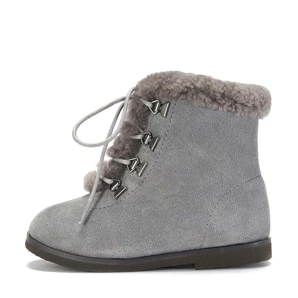 Модель выполнена из серой натуральной замши и имеет подкладку из 100% натуральной овчины. Мех подкладки мягкий, очень теплый и имеет красивую фактуру. Ботиночки декорированы шнуровкой, которая позволяет удобно и плотно зафиксировать обувь на ножке. Они будут хорошо смотреться с теплой дубленкой с меховым воротником, пуховиком или зимней паркой. В модели Amy будет уютно гулять и по зимним парковым дорожкам, и по заснеженным горным склонам.
