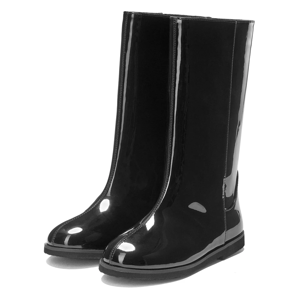 Мы знаем, как давно вы ждали именно эту модель сапог: высокие, прямые да еще и из лакированной кожи. В общем, идеальная модель, которая вне моды и всегда в тренде! Можно носить их по-жокейски, с заправленными внутрь узкими брюками, а можно с летящими платьями и юбками.