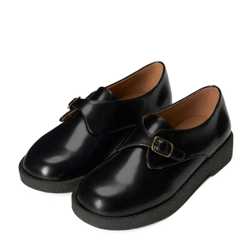 Эта модель была специально задумана для школьной коллекции, хотя будет очень актуальна и вне школы. Ботиночки с круглым носом из лакированной кожи на высокой резиновой подошве можно смело носить и с платьями, и с брюками.