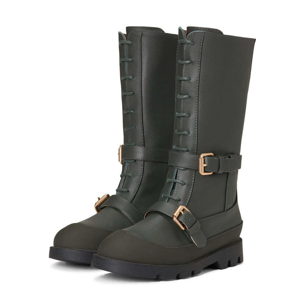 Нам очень нравятся высокие сапоги, поэтому у нас такой огромный выбор этой модели в самых разных вариантах - от простых и лаконичных моделей до вот таких эффектных, с множеством интересных деталей в армейском стиле. И пусть вас не пугают высокая шнуровка и ремешки с пряжками - они носят исключительно декоративную функцию, ведь сбоку спрятана удобная молния. А вот высокая подошва-протектор и плотная, натуральная кожа позволят сапогам Ayla стать вашими незаменимыми спутниками во время долгих прогулок.
