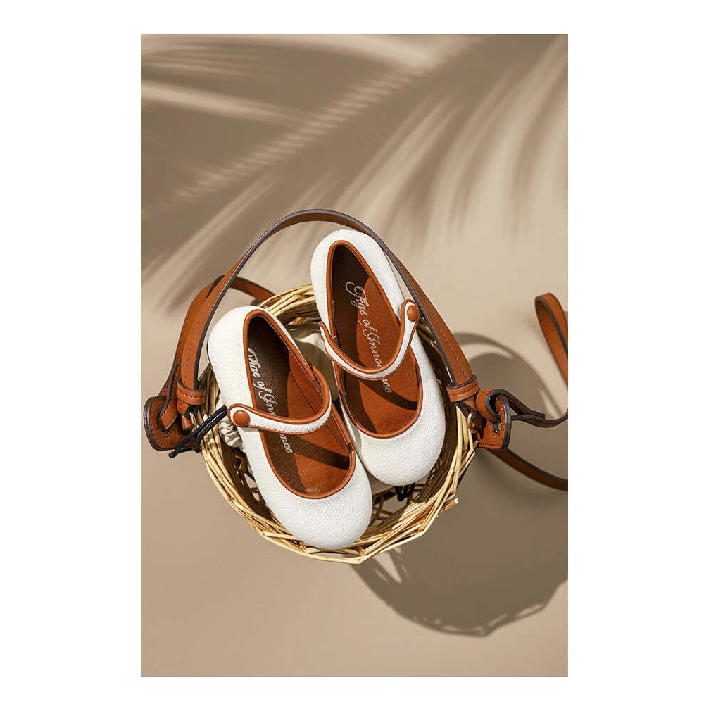 Еще одна изысканная и благородная модель в нашей коллекции — туфельки Biancа из плотного, фактурного текстиля, украшенные маленькой декоративной кожаной пуговкой и кантом контрастного оттенка. У этой модели нет застежки, зато есть скрытая резиночка, поэтому их очень легко и удобно надевать, и они отлично фиксируют ножку. Ваша малышка может носить их с платьями плиссе и поло, а также блузками и платьями из легкого шелка, как это делали в начале прошлого века, когда туфли Mary Jane только вошли в моду.