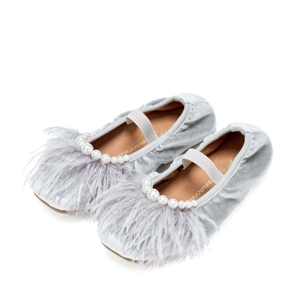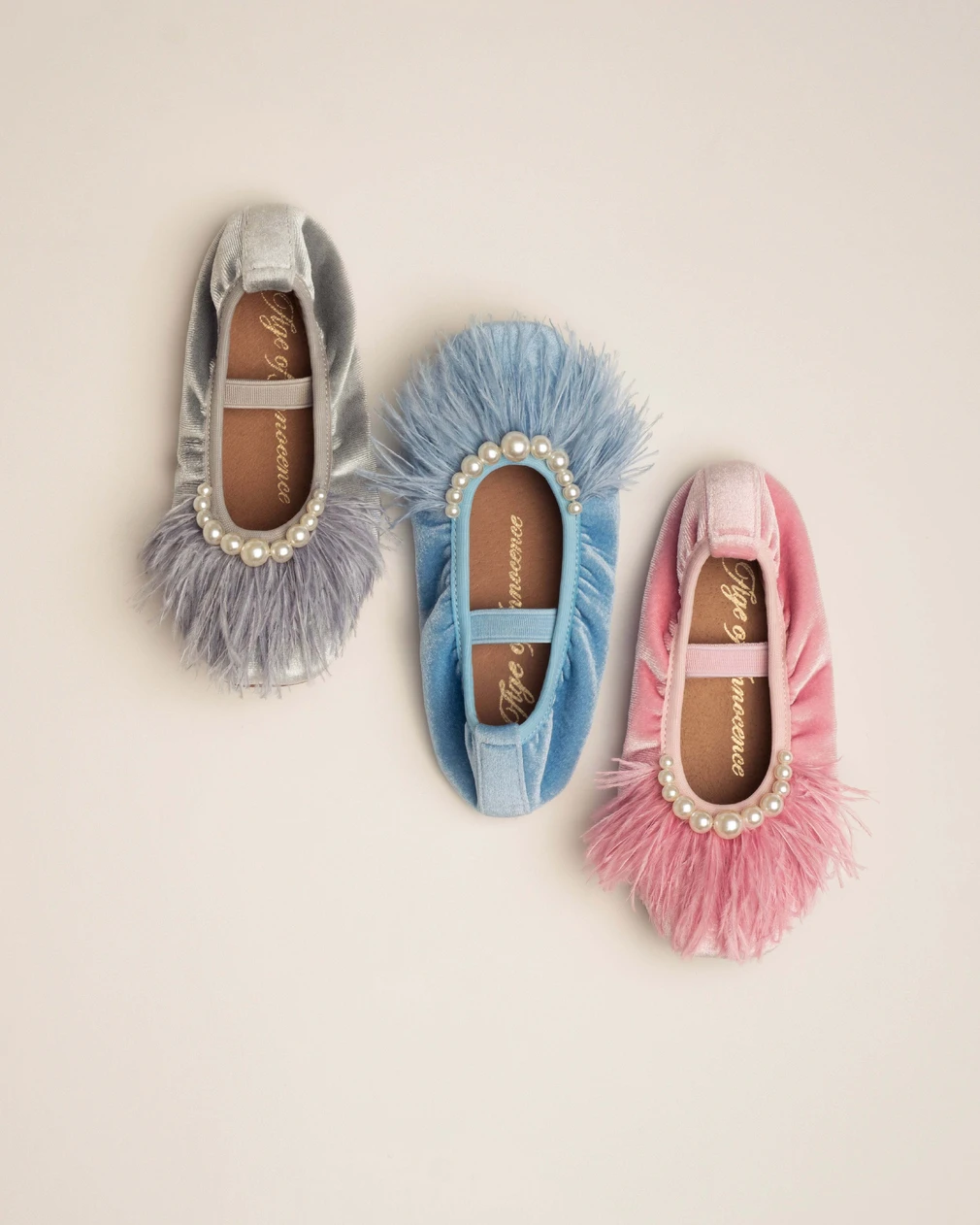 Решили добавить немного гламурного шика в коллекцию с помощью бархата, перьев и жемчуга, объединив их в одной модели балеток Blanche. Супер эффектные и при этом невероятно легкие и удобные, они, без сомнения, станут любимой парой в гардеробе вашей малышки.