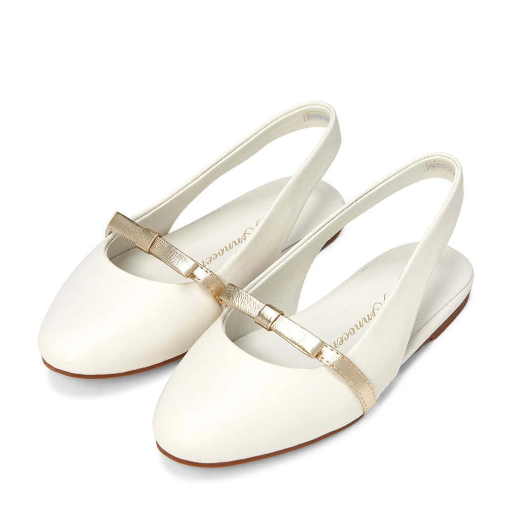 Белоснежные туфельки с открытой пяткой и изящным золотым бантиком мы назвали Carlota. Выполненные из самой мягкой натуральной кожи, они прекрасно сидят на ножке и подойдут к абсолютно любому образу: от летящего сарафана до джинсовых шорт.
