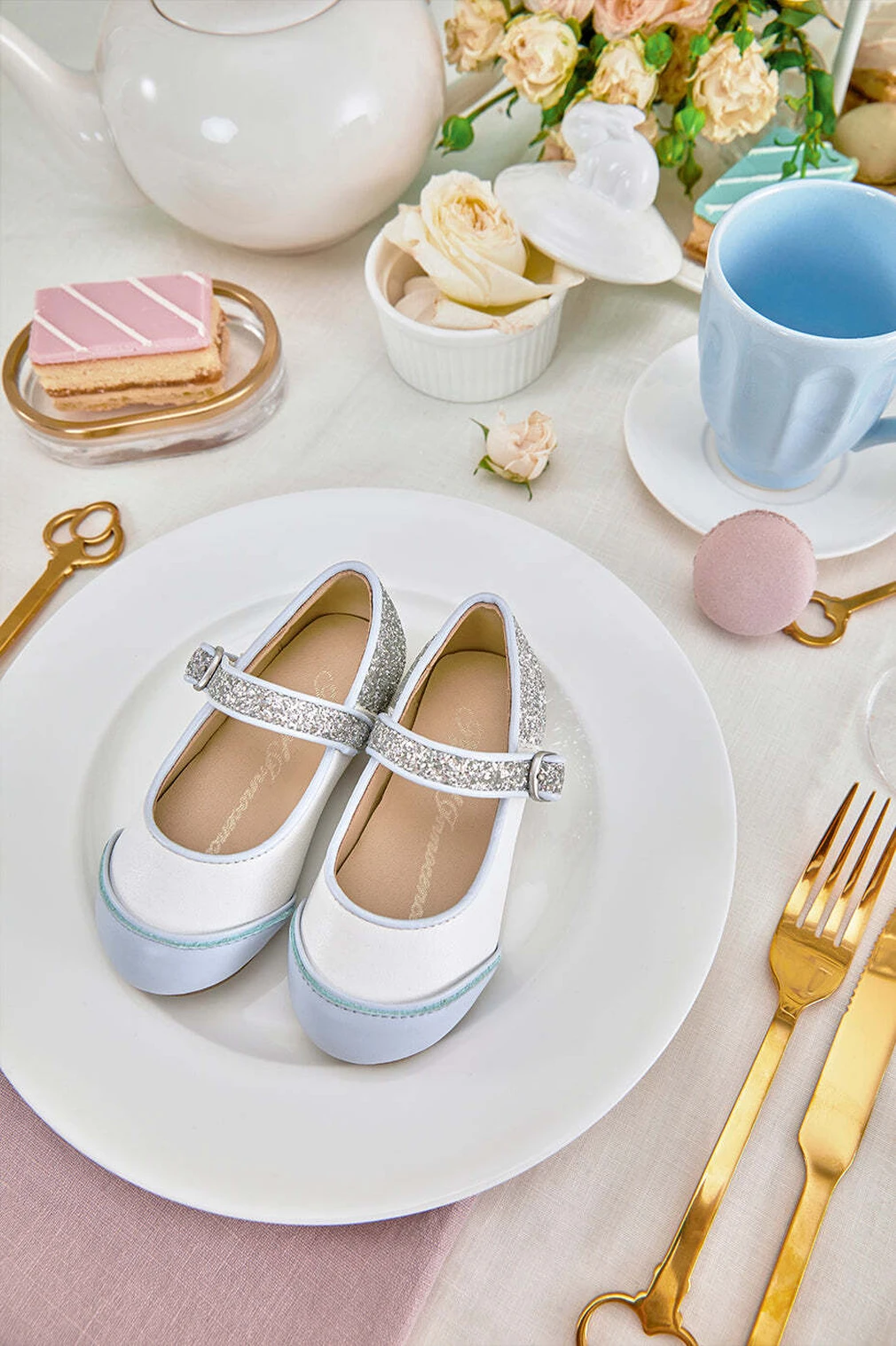 И снова мы черпаем вдохновение в моде начала и середины прошлого века, перефразируя ее и дополняя актуальными деталями. Круглый носик с глубоким вырезом, сочетание нежных, пастельных оттенков кожи и серебряного глиттера, элегантный кант — эта модель получилась стилистически легкой, воздушной, элегантной и необычной.