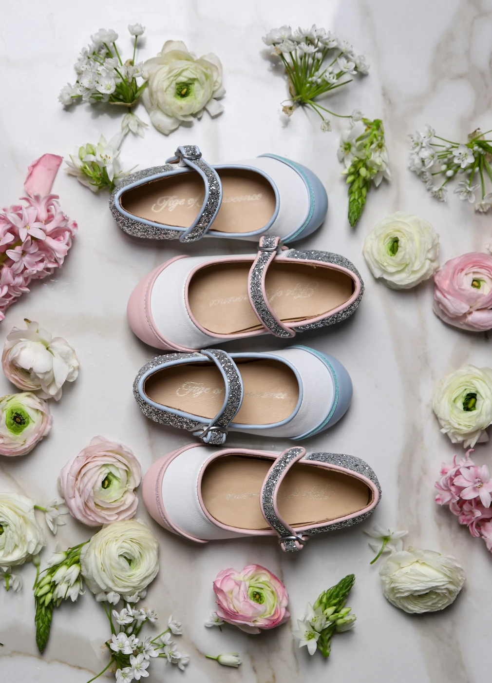 И снова мы черпаем вдохновение в моде начала и середины прошлого века, перефразируя ее и дополняя актуальными деталями. Круглый носик с глубоким вырезом, сочетание нежных, пастельных оттенков кожи и серебряного глиттера, элегантный кант — эта модель получилась стилистически легкой, воздушной, элегантной и необычной.