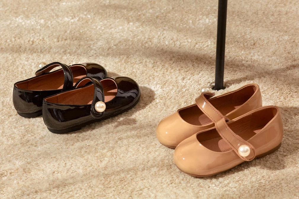 Классические лакированные туфельки «на все случаи жизни», украшенные эффектной крупной жемчужиной. У этой модели нет застежки, под ремешком скрыта эластичная резинка, благодаря которой их легко надевать и снимать. Эта идеальная обувь для школы и походов в театр. Ее можно сочетать с платьями и блузками из легкого шелка и пиджаков из бархата.