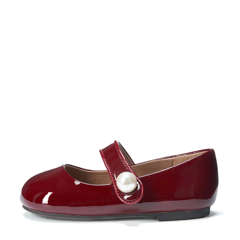 Классические лакированные туфельки «на все случаи жизни», украшенные эффектной крупной жемчужиной. У этой модели нет застежки, под ремешком скрыта эластичная резинка, благодаря которой их легко надевать и снимать. Эта идеальная обувь для школы и походов в театр. Ее можно сочетать с платьями и блузками из легкого шелка и пиджаков из бархата.