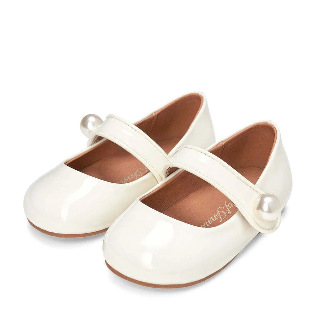 Классические лакированные туфельки «на все случаи жизни», украшенные эффектной крупной жемчужиной. У этой модели нет застежки, под ремешком скрыта эластичная резинка, благодаря которой их легко надевать и снимать. Эта идеальная обувь для школы и походов в театр. Ее можно сочетать с платьями и блузками из легкого шелка и пиджаков из бархата.