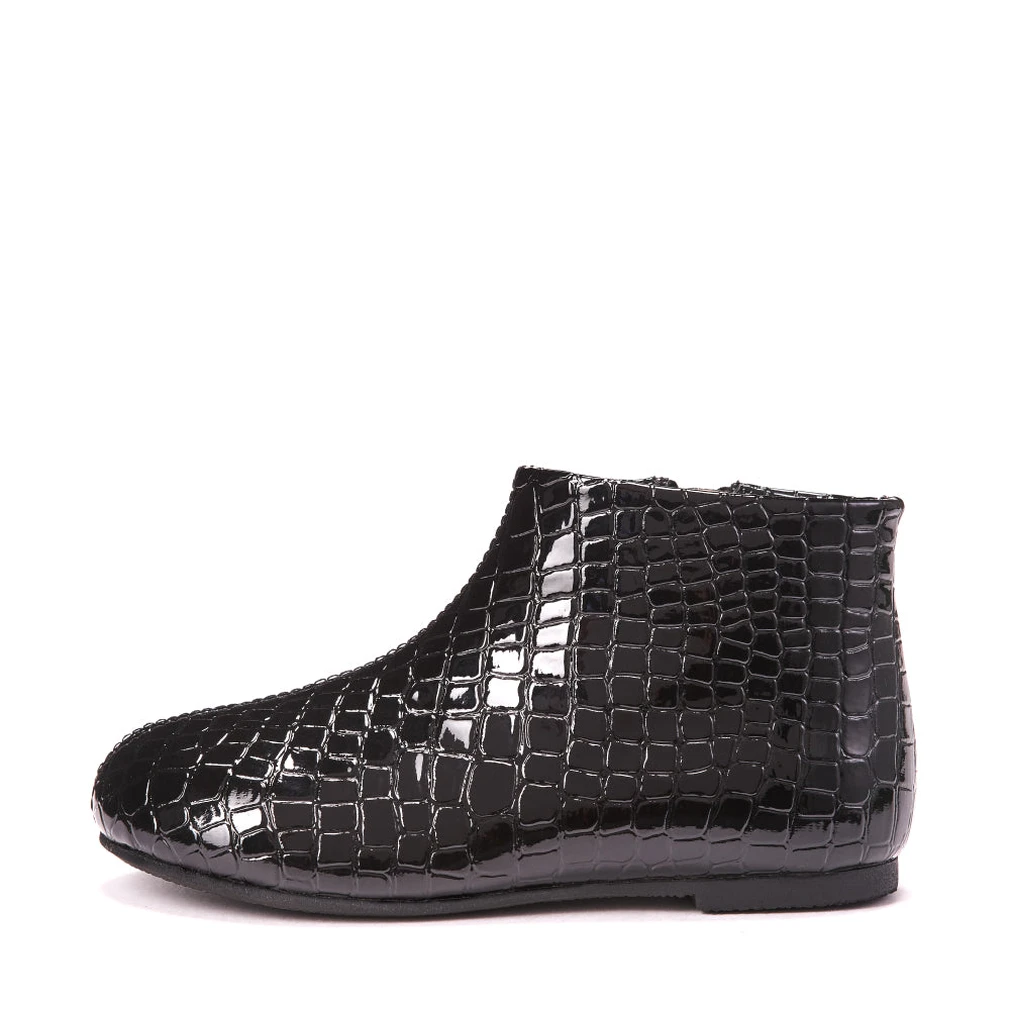 Полусапожки из фактурной глянцевой кожи на боковой молнии — лаконичная и элегантная модель в классическом стиле. Идеальный вариант для осенних образов и прогулок, который будет гармонично смотреться практически с любым набором одежды: будь то джинсы или юбка.