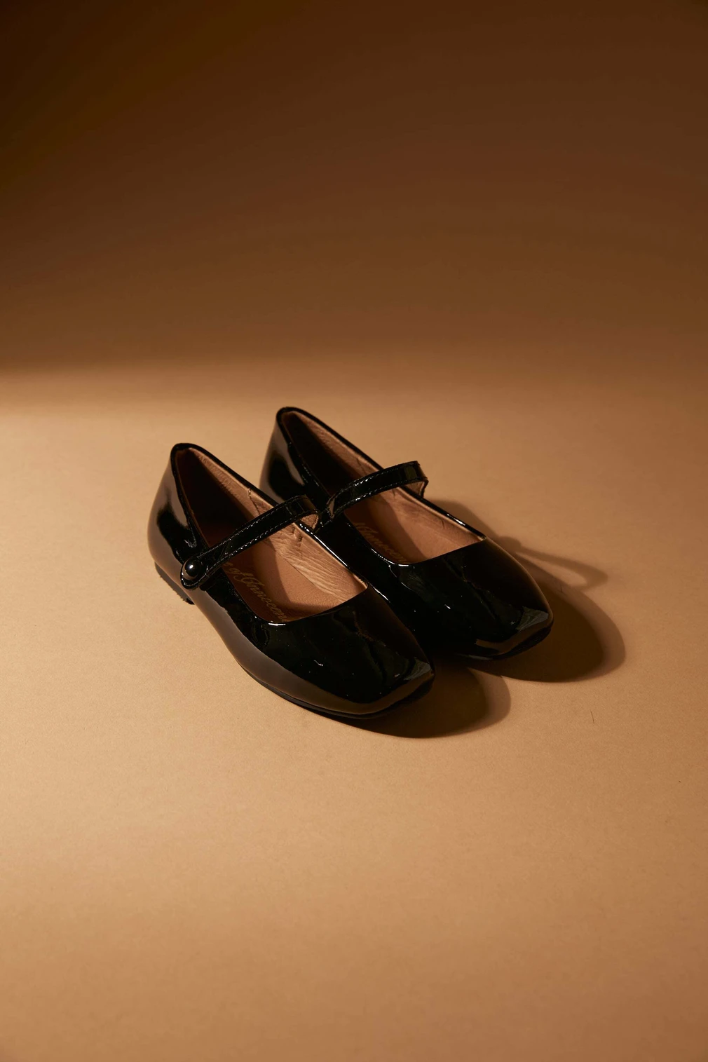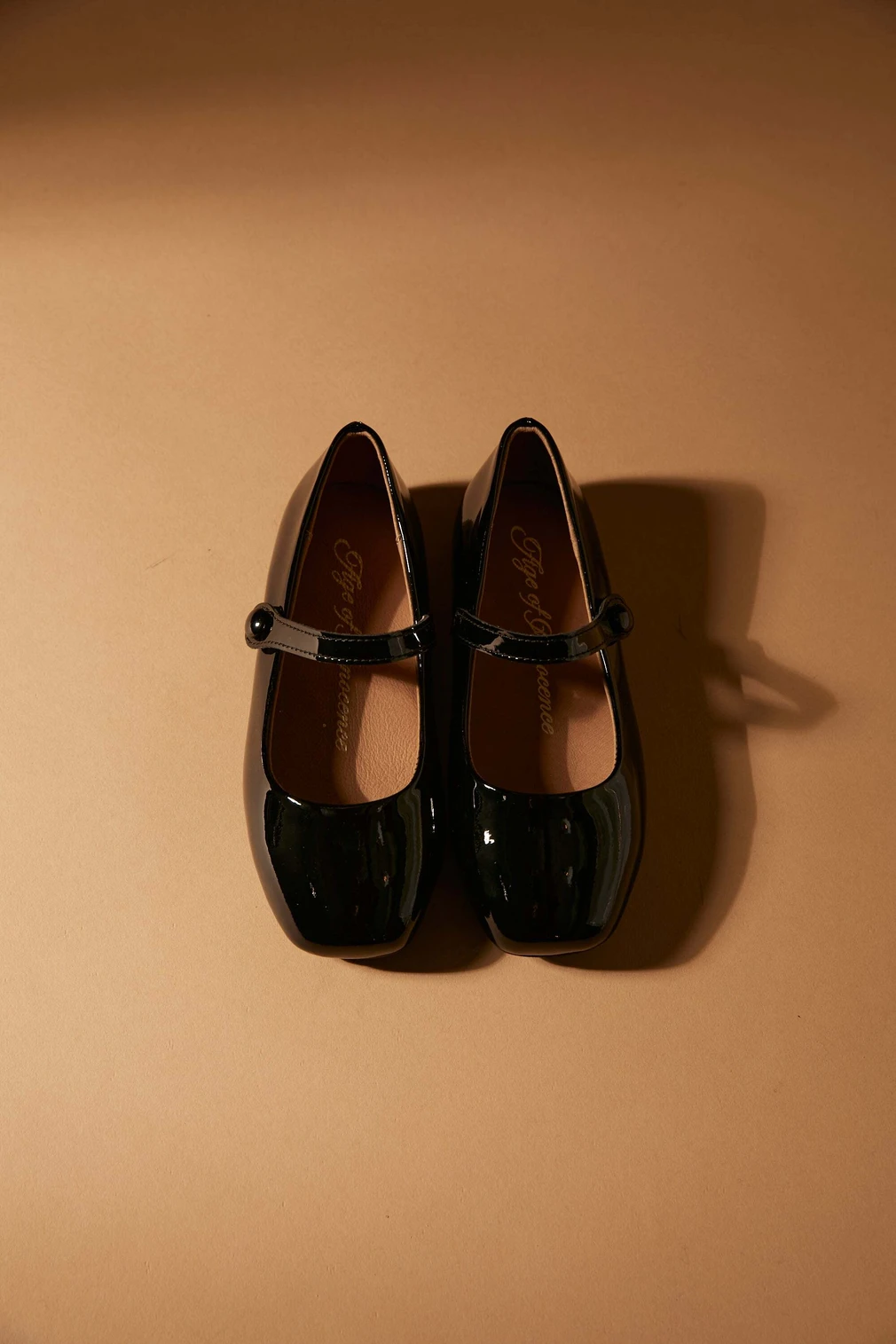 Самая простая и элегантная модель в нашей коллекции — туфельки Chloe, выполненные из лакированной кожи и украшенные маленькой пуговкой. У этой модели нет застежки, зато есть скрытая резиночка, поэтому их очень легко и удобно надевать, и они отлично фиксируют ножку.