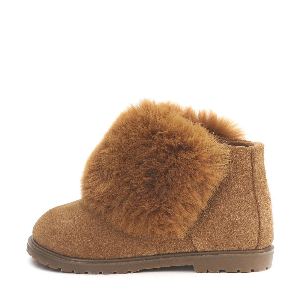 Теплые и уютные замшевые ботиночки Chubi нравятся всем малышкам. Сделанные из натуральной замши коричневого цвета и утепленные натуральной овчиной, с толстой рифленой подошвой ботиночки Chubi созданы для долгих прогулок зимой — в них ножка вашей девочки никогда не замерзнет. Ботиночки застегиваются на липучку, декорированную искусственным мехом, чтобы их можно было легко надевать. Мы рекомендуем носить их с теплыми легинсами или узкими джинсами и модной паркой.