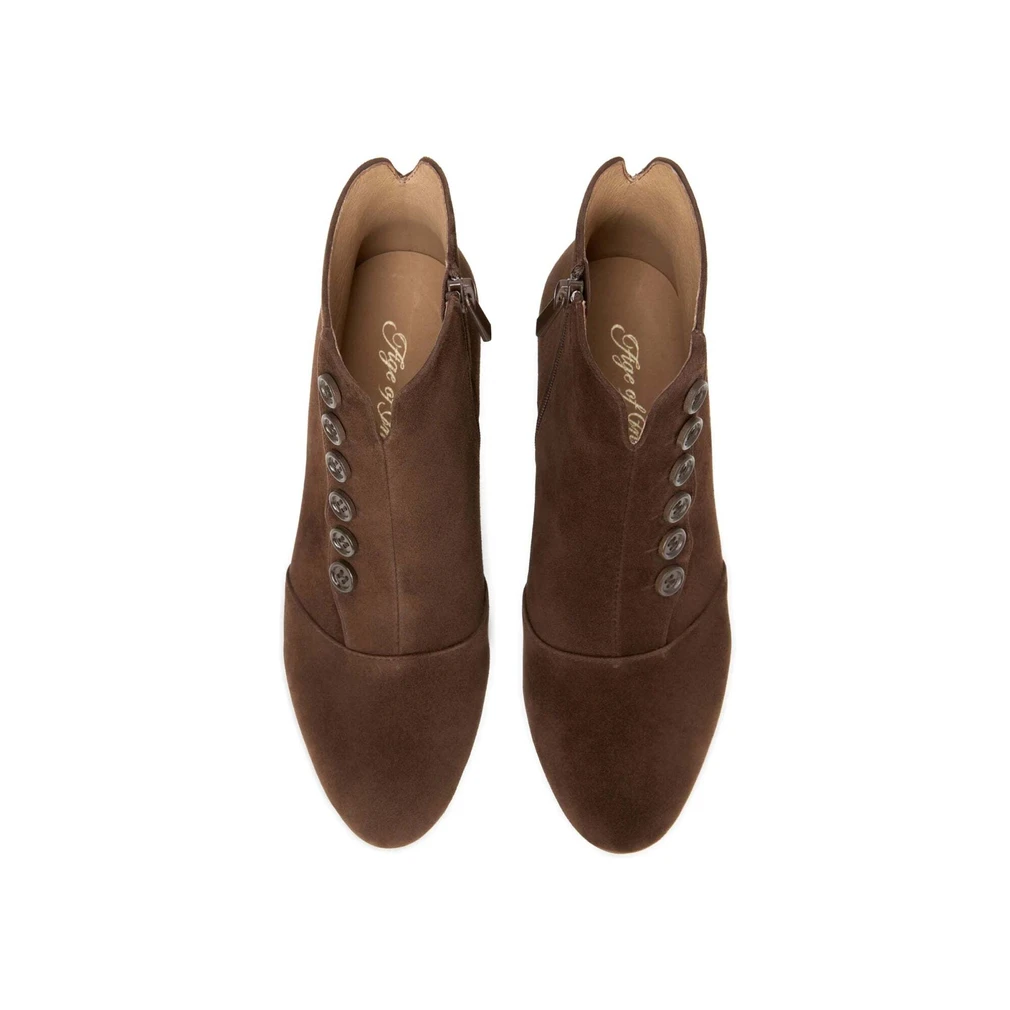 Викторианская классика, помноженная на уверенный и выразительный современный дизайн, насыщенный коричневый цвет, натуральная замша и декоративные пуговки - представляем вам наши роскошные ботильоны Constance. Стилизуйте их как с юбками и платьями, так и с брюками для повседневных выходов и особых случаев. Устойчивый каблук 6 см, закругленный нос и комфортная колодка позволят чувствовать себя уверенно на каждом шагу.