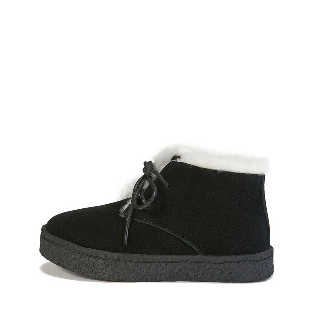 Стильные и удобные ботиночки Cora сшиты из мягкой натуральной замши со 100% овчиной внутри и толстой рифленой подошвой в тон. Ботиночки Cora идеальны для долгих зимних прогулок. Декорированные изящной шнуровкой в цвет обуви ботинки чудесно будут смотреться с платьями, юбками и теплыми колготками.