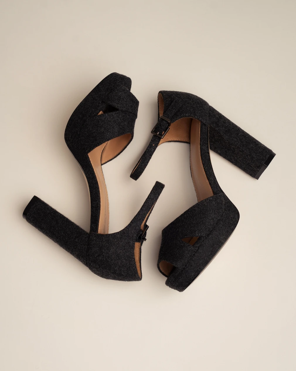 Высокий каблук, платформа, глубокий вырез и открытый мыс – у этой пары есть все шансы стать знаковой моделью. Ну а если к этому еще добавить довольно неожиданную для босоножек шерсть (внутри они выполнены из натуральной кожи) в самом актуальном оттенке, то становится очевидно, что Dalia этим летом мы не раз увидим на самых красивых ногах.
