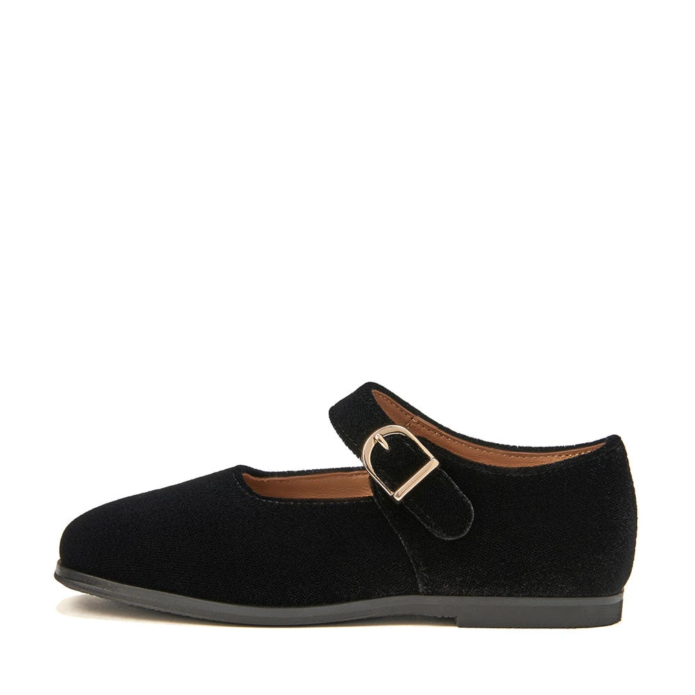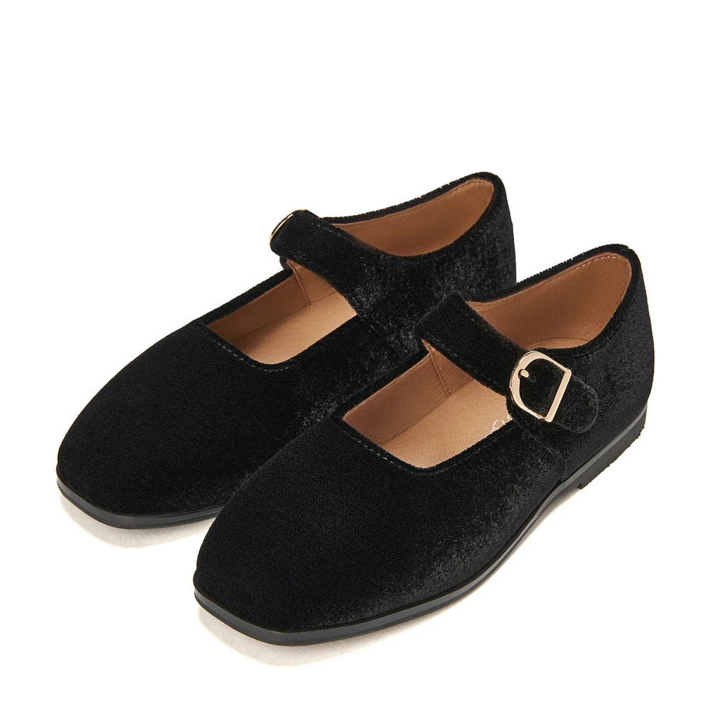 Квадратный носик этих туфелек подчеркивает аналогичный, достаточно высокий квадратный вырез, а дополнительный эффект бархатному материалу (внутри туфли выполнены из натуральной кожи) придает декоративная золотая пряжка. Застежка-липучка облегчает и ускоряет процесс надевания, поэтому девочки точно захотят носить эти туфельки каждый день с школьной формой или шерстяными платьями, или брючными костюмами.