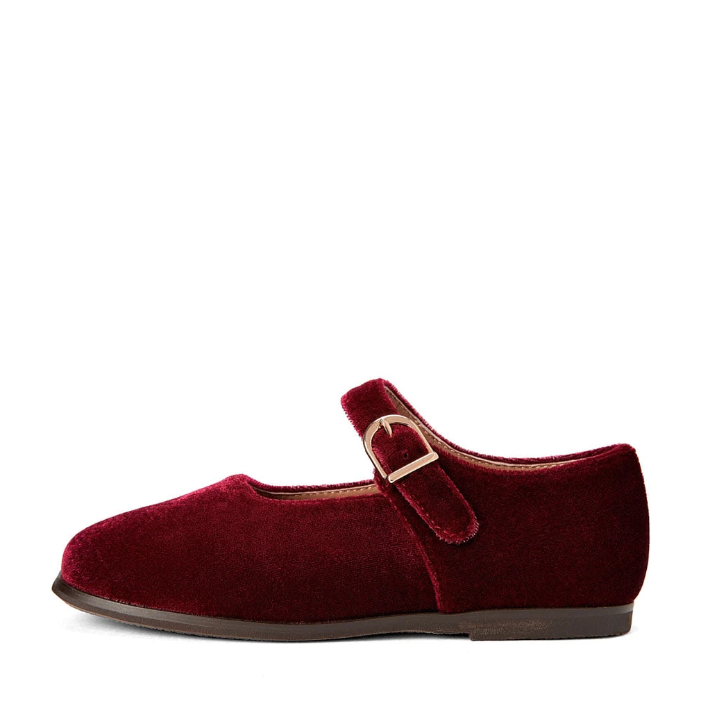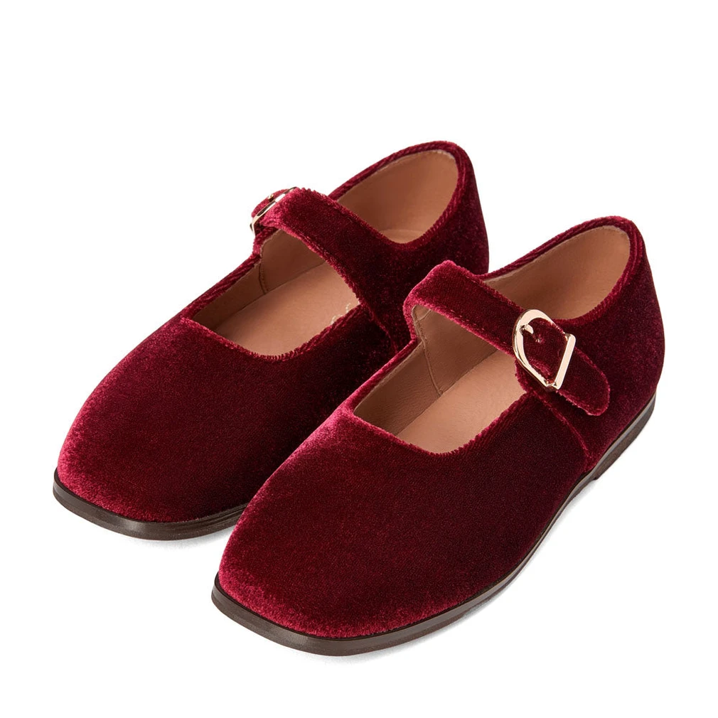 Квадратный носик этих туфелек подчеркивает аналогичный, достаточно высокий квадратный вырез, а дополнительный эффект бархатному материалу (внутри туфли выполнены из натуральной кожи) придает декоративная золотая пряжка. Застежка-липучка облегчает и ускоряет процесс надевания, поэтому девочки точно захотят носить эти туфельки каждый день с школьной формой или шерстяными платьями, или брючными костюмами.