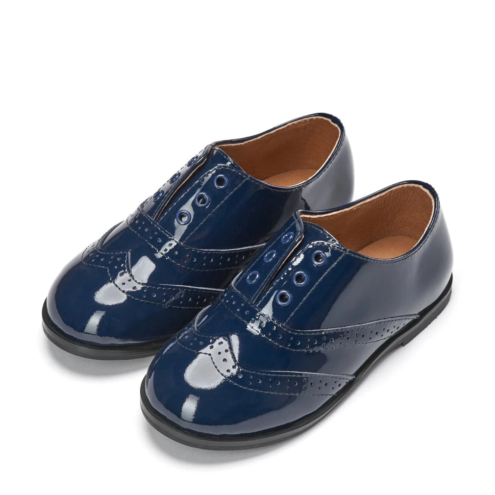 Обычно такие туфли-ботинки с перфорацией и шнуровкой называют броги. Небывалую популярность модель приобрела среди мужчин в ХХ веке благодаря принцу Уэльскому Эдварду. Кстати, именно по его пожеланию у этих ботинок был сделан отрезной мысок (в форме буквы W), по шву которого располагались перфорации — элемент, сделавший броги популярными. Позже броги оценила и женская половина человечества. Ну а мы считаем, что они будут очень уместны и в детском гардеробе. Кстати, наши броги Elenor отличаются еще и отсутствием шнурков, что особенно удобно для малышей. С укороченными брючками они будут смотреться просто восхитительно.
