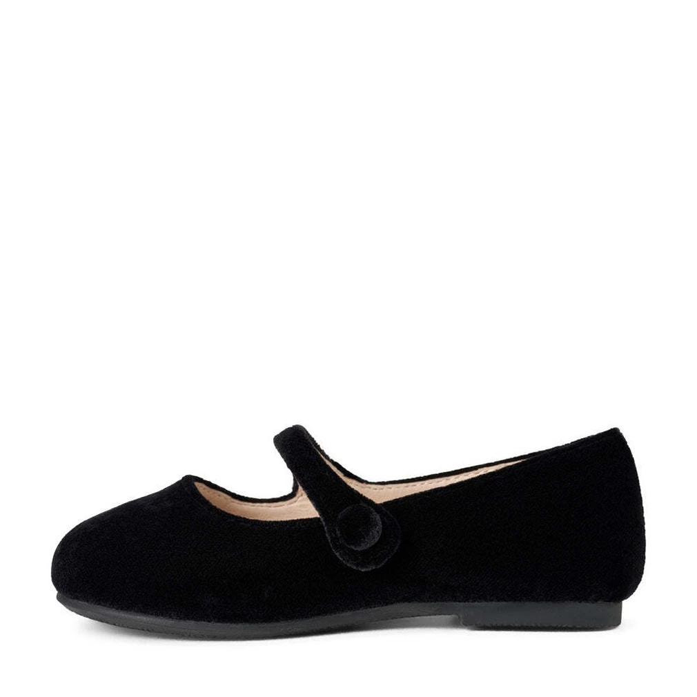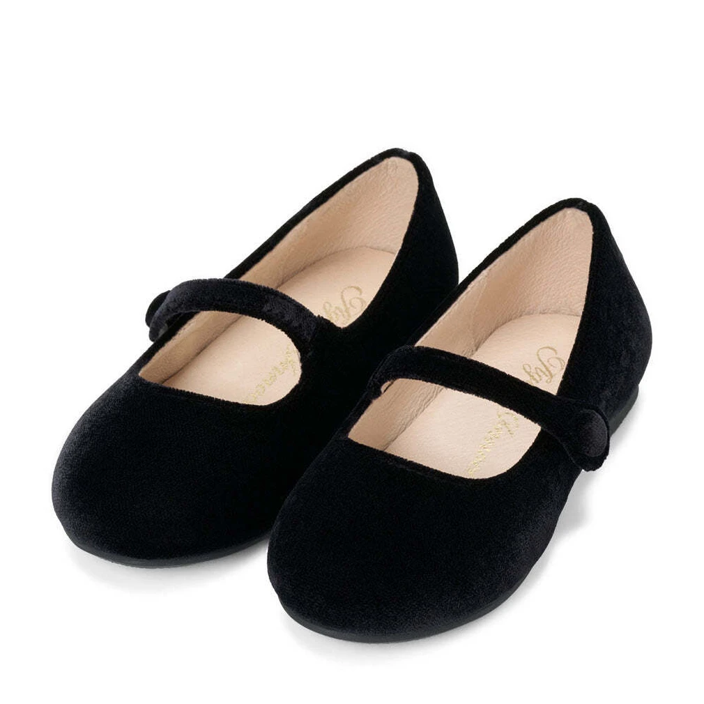 Elin Velvet — это туфельки в бархате черного цвета. У этой модели нет застежки, зато есть скрытая резиночка, поэтому их очень легко и удобно надевать, и они отлично фиксируют ножку. Силуэт этих туфелек предполагает, что ваша малышка может носить их с трикотажными платьями плиссе, а также блузками и платьями из легкого шелка, тафты или бархата.