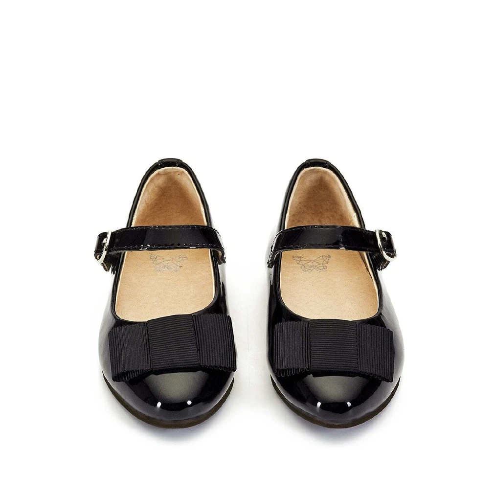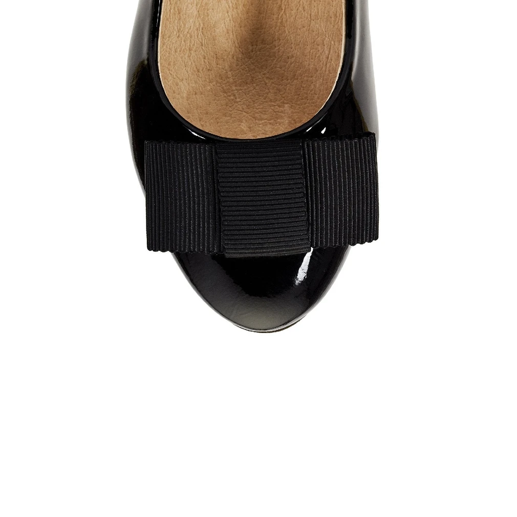 Очаровательные черные туфли Ellen сделаны из натуральной лакированной кожи и декорированы элегантным минималистичным бантом. Эти туфли станут идеальным завершением праздничного образа. Носить можно с платьями и юбками.