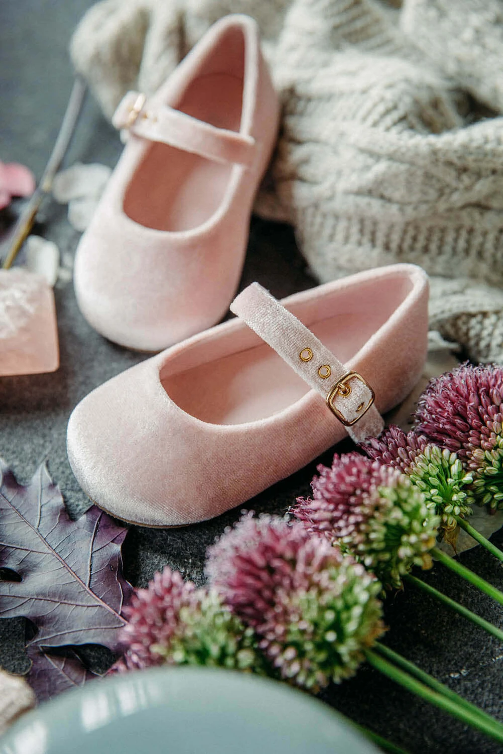 Бархатные туфельки Eva серо-розового цвета идеальны для праздника или вечернего выхода. Декорированные лишь минималистичной золотой пряжкой они будут хорошо смотреться как с нарядным платьем, так и со школьной формой или укороченными джинcами.