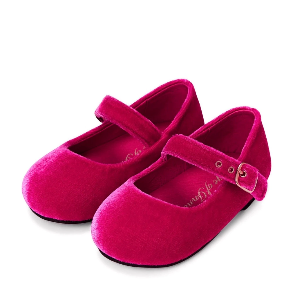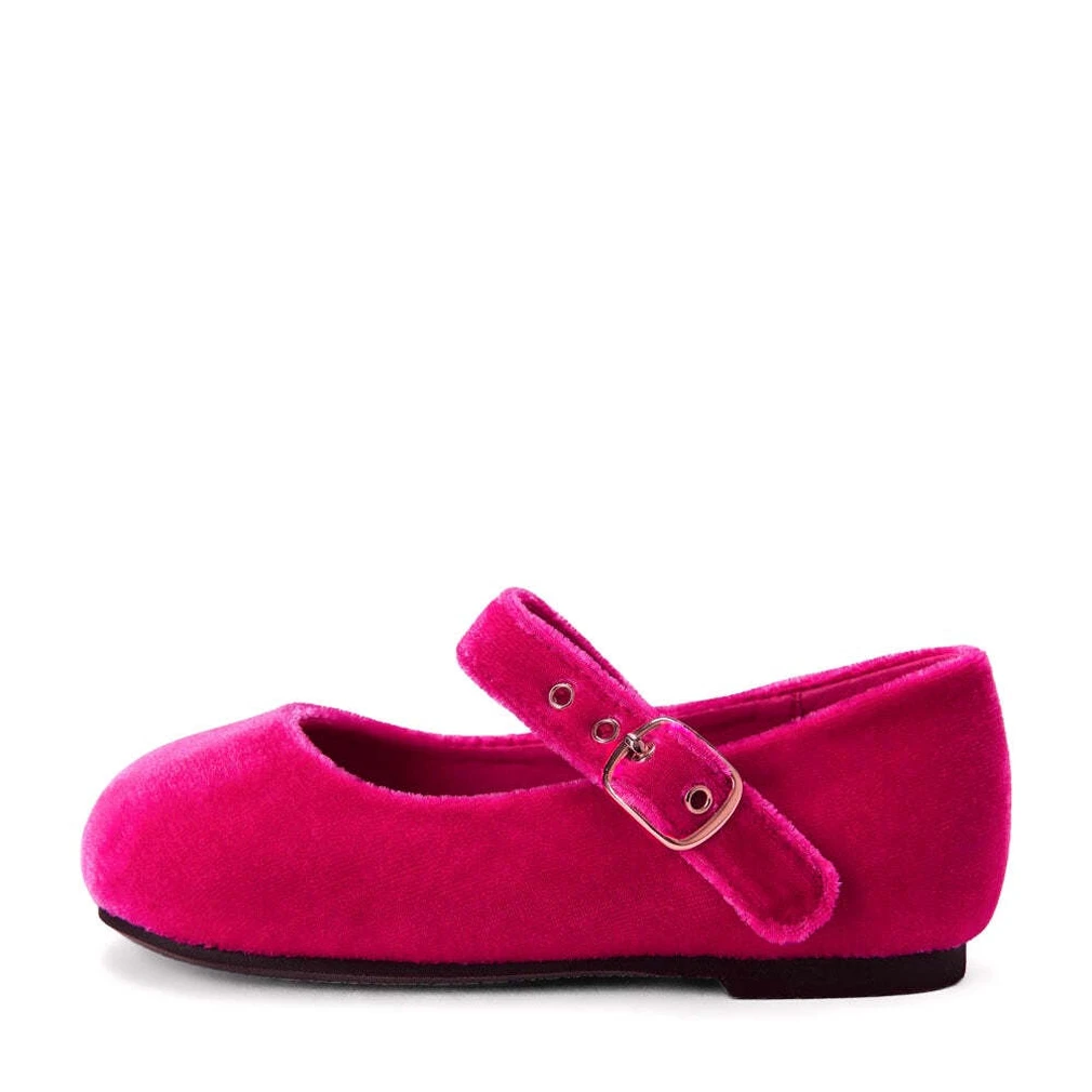 Бархатные туфельки Eva цвета фуксия идеальны для праздника или вечернего выхода. Декорированные лишь минималистичной золотой пряжкой они будут хорошо смотреться как с нарядным платьем, так и со школьной формой или укороченными джинcами.