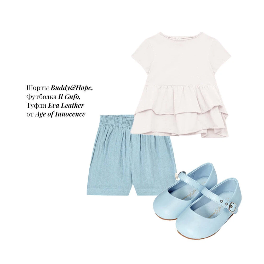 Туфельки Eva выполнены из мягкой фактурной кожи голубого цвета. Круглый носик, достаточно глубокий вырез, классическая застежка с золотой пряжкой — в этой модели нет ничего лишнего, и при этом она очаровательно смотрится на маленькой детской ножке. Туфли прекрасно подойдут как малышкам, делающим свои первые шаги, так и девчонкам постарше. Носите наши Eva с летними платьями и белыми брюками, джинсовыми шортами и объемными блузами.