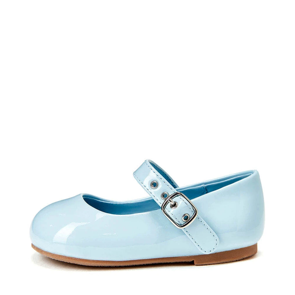 Лакированные голубые туфельки Eva идеальны для праздника или вечернего выхода. Декорированные лишь минималистичной золотой пряжкой они будут хорошо смотреться как с нарядным платьем, так и со школьной формой или укороченными джинcами.
