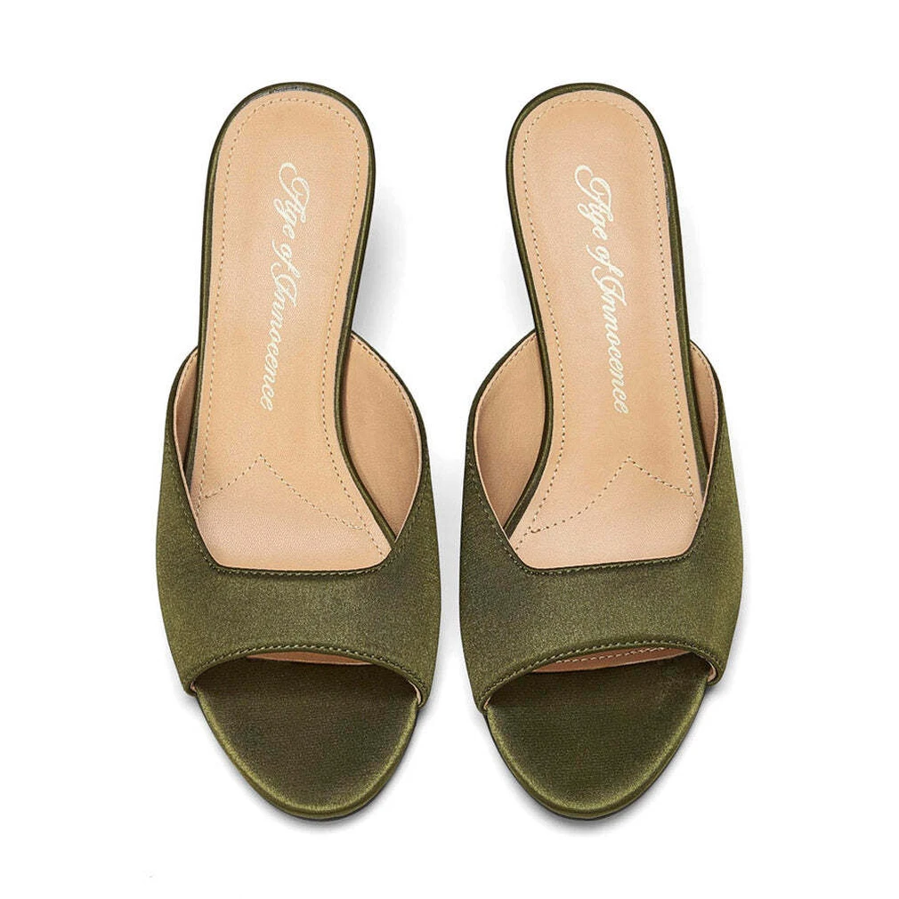 Несколько лет назад эта обувь завоевала сердца всех дизайнеров и фешн-инфлюенсеров, а теперь без них не обходятся ни один показ и стритстайл-хроника. Популярность мюлей вполне объяснима — это идеальная летняя обувь. Наши сатиновые мюли с открытым носиком на каблуке-рюмочке высотой 6 см составят вам компанию во всех летних приключениях: от романтических свиданий до выходов в свет.