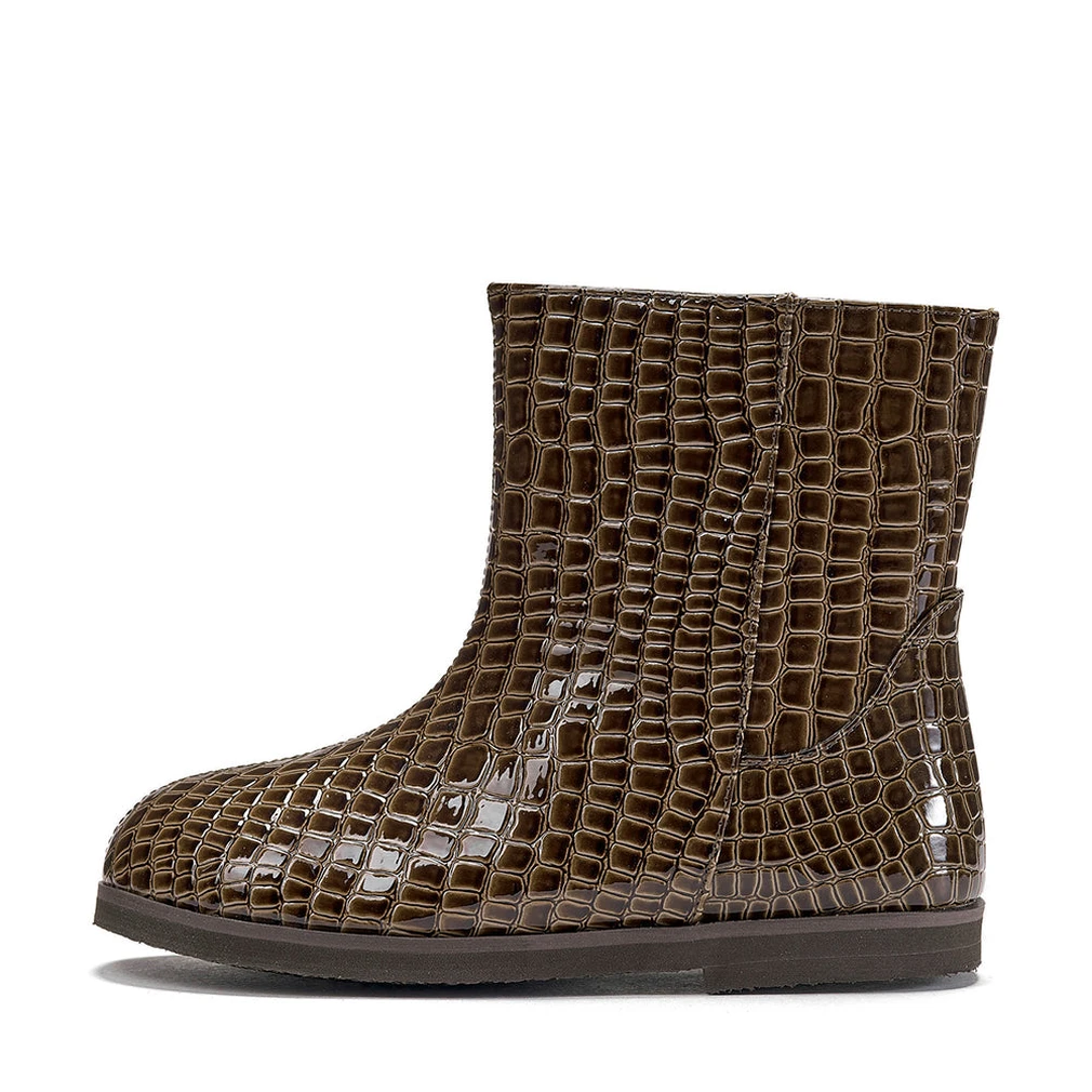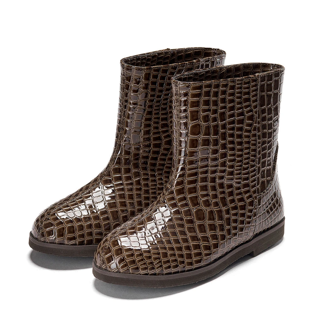 В нашей новой коллекции появилась абсолютно знаковая модель — прямые сапоги Filippa PU 2.0 в лакированной коже «под крокодила» коричневого цвета. Сапоги Filippa PU 2.0 будут очень стильно смотреться и с легинсами, и с узкими брючками или джинсами, и даже с бермудами или шортами.