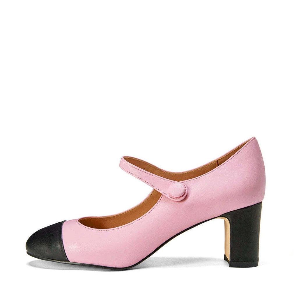 Мы давно хотели сделать модель на устойчивом каблуке в стиле ретро — и вот теперь она есть в нашей коллекции. Декоративная застежка Mary Jane c маленькой пуговкой сбоку, под которой спрятана эластичная резинка, напоминает о моде прошлого века, а чуть зауженный носик возвращает к современным трендам. Туфли Gemma из натуральной кожи розового цвета с контрастным черным носиком будут восхитительно смотреться с плотными черными колготками и плиссированными юбками или подчеркивающими фигуру платьями.
