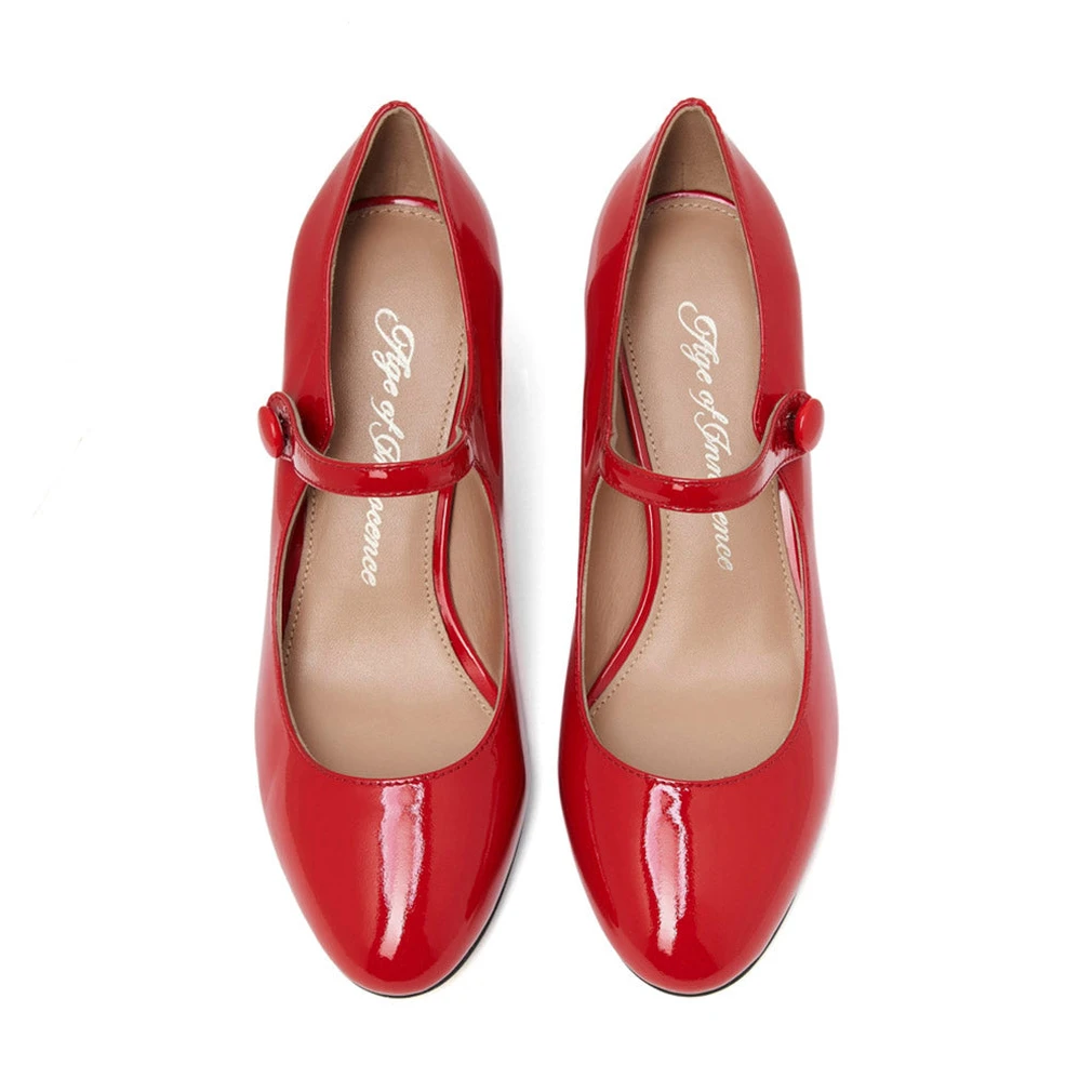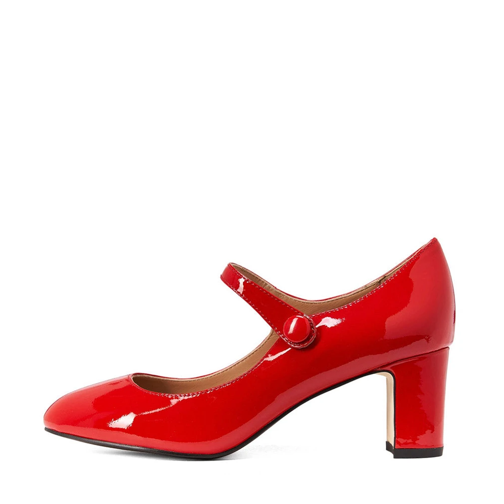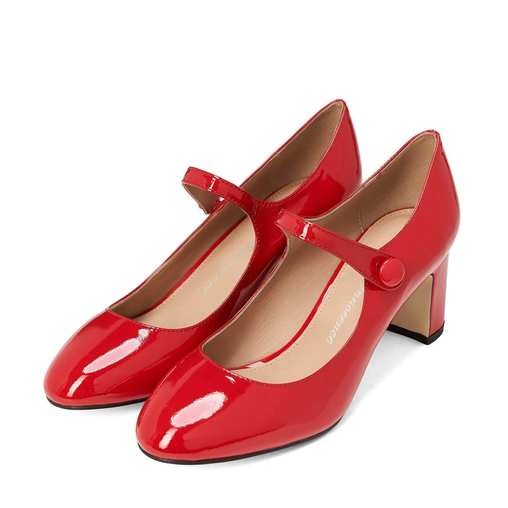 Мы давно хотели сделать модель на устойчивом, небольшом каблуке в ретро-стиле — и вот теперь она есть в нашей коллекции. Декоративная застежка Mary Jane c маленькой пуговкой сбоку, под которой спрятана эластичная резинка, напоминает о моде прошлого века, а чуть зауженный носик возвращает к современным трендам. Туфли Gemma из натуральной лакированной кожи красного цвета будут восхитительно смотреться с летними платьями и юбками с цветочными принтами, а также с прямыми белыми брюками.