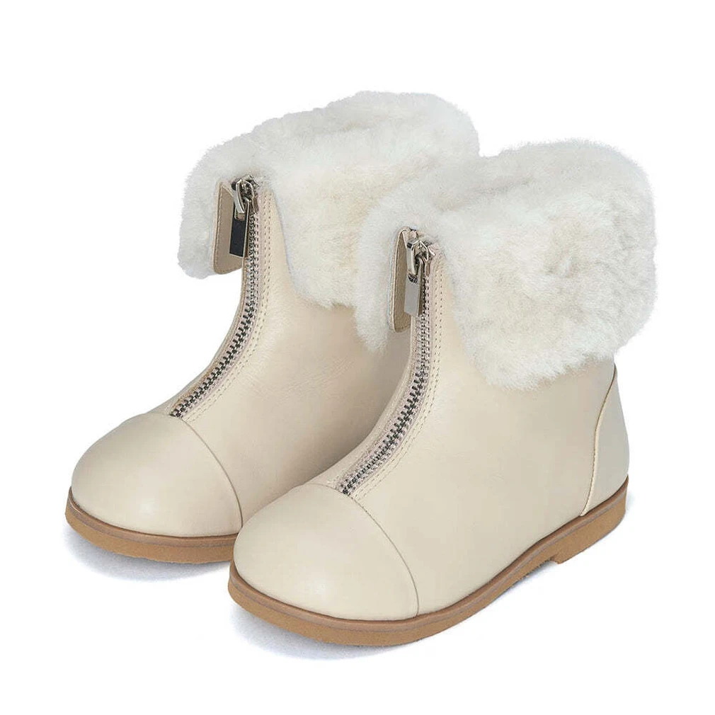 Сапожки Ivy 3.0 выполнены из натуральной кожи разных оттенков. В качестве подкладки использована 100% натуральная овчина. Белый широкий меховой отворот не только украшает ботиночки, но и придает им дополнительное тепло. В ботиночках Ivy можно смело отправляться в зимнее путешествие и встречать праздник на воздухе у настоящей новогодней елки.