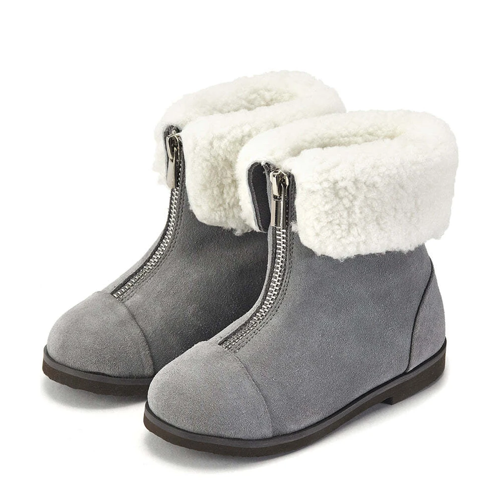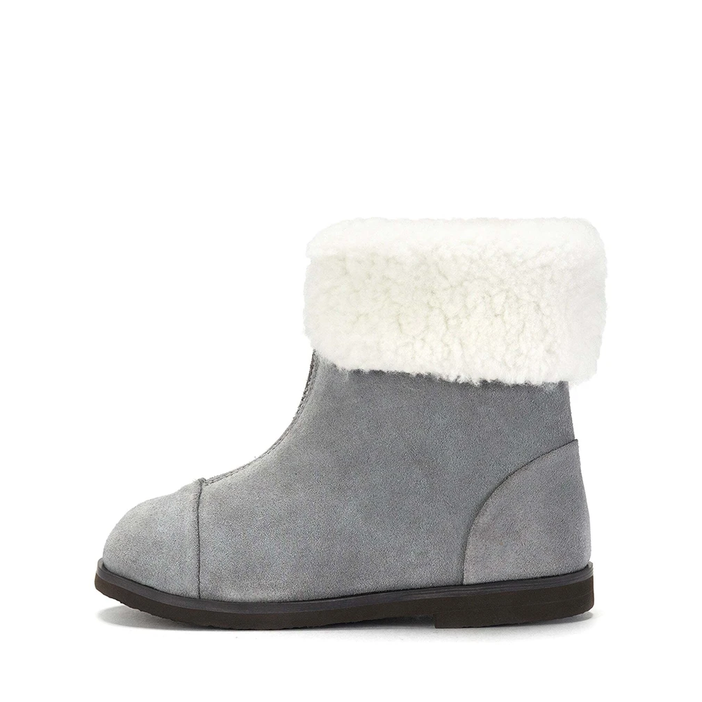Сапожки Ivy выполнены из натуральной замши серого цвета. В качестве подкладки использована 100% натуральная овчина. Белый широкий меховой отворот не только украшает ботиночки, но и придает им дополнительное тепло. В ботиночках Ivy можно смело отправляться в зимнее путешествие и встречать праздник на воздухе у настоящей новогодней елки.