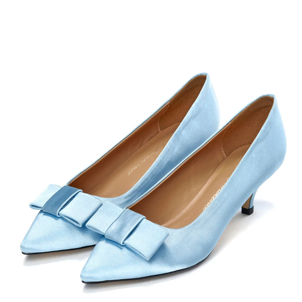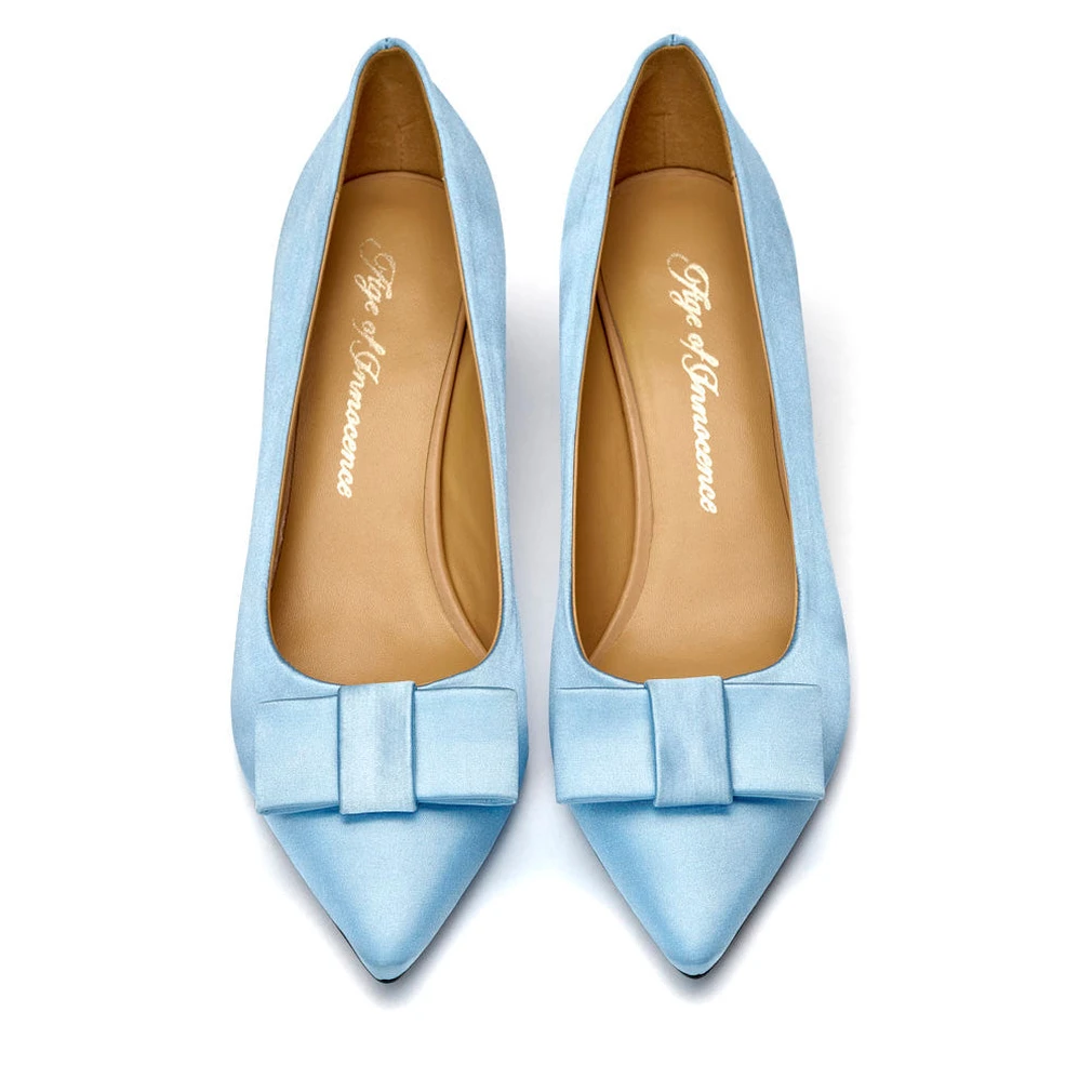 Туфли Jacqueline обтянуты атласом голубого цвета, причем шелковистая фактура придает оттенку еще большее благородство. Чуть заостренный нос, маленький 5 см каблук и элегантный бант добавляют классической, лаконичной модели более актуальное звучание. Модель очень удобная и изысканная одновременно. Носите эти туфли с узкими классическими брюками и нарядными платьями и будьте уверены, что Jacqueline точно не оставят вас без внимания и комплиментов.