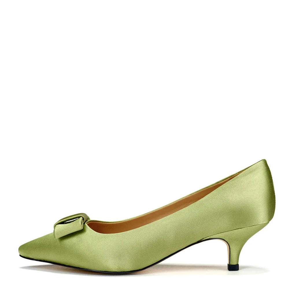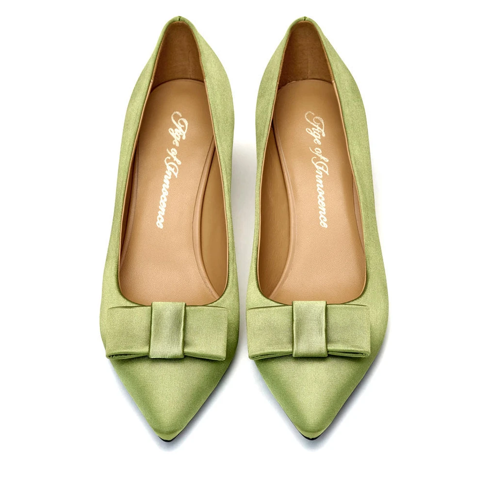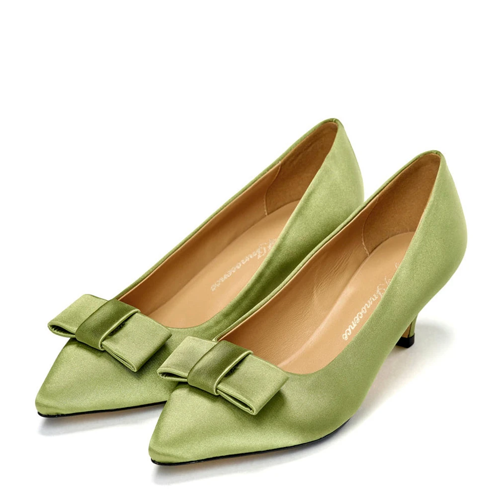 Туфли Jacqueline обтянуты атласом зеленого цвета, причем шелковистая фактура придает оттенку еще большее благородство. Чуть заостренный нос, маленький 4.5 см каблук и элегантный бант добавляют классической, лаконичной модели более актуальное звучание. Модель очень удобная и изысканная одновременно. Носите эти туфли с узкими классическими брюками и нарядными платьями и будьте уверены, что Jacqueline точно не оставят вас без внимания и комплиментов.