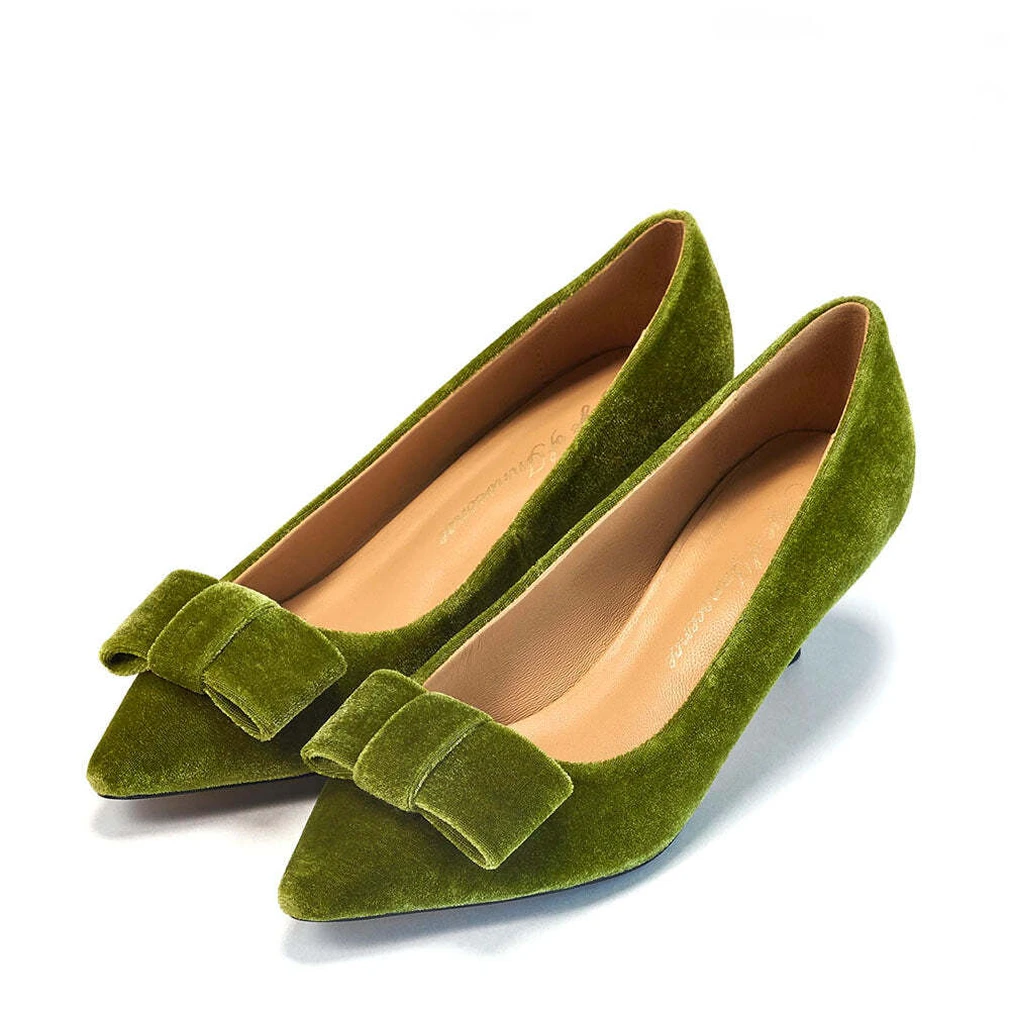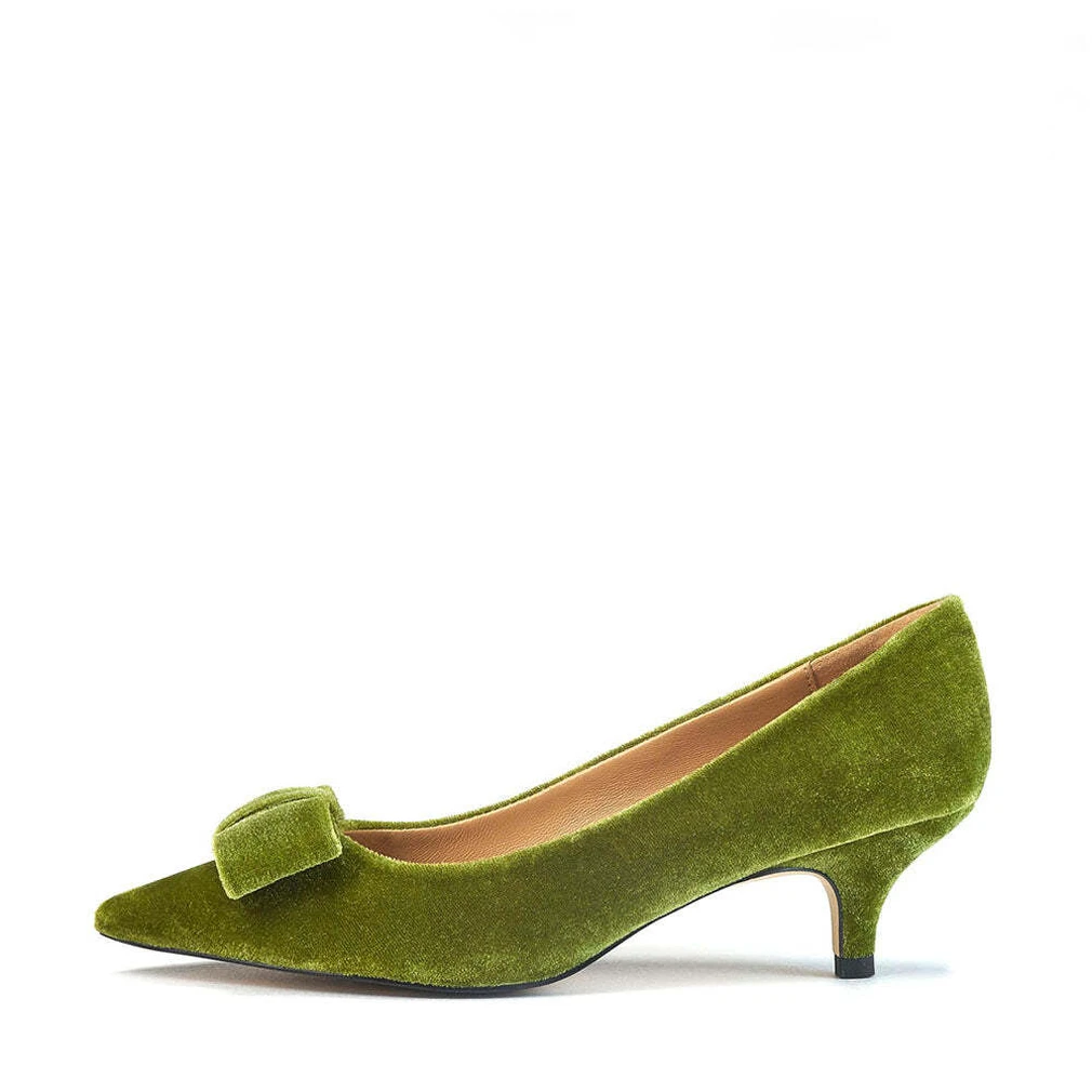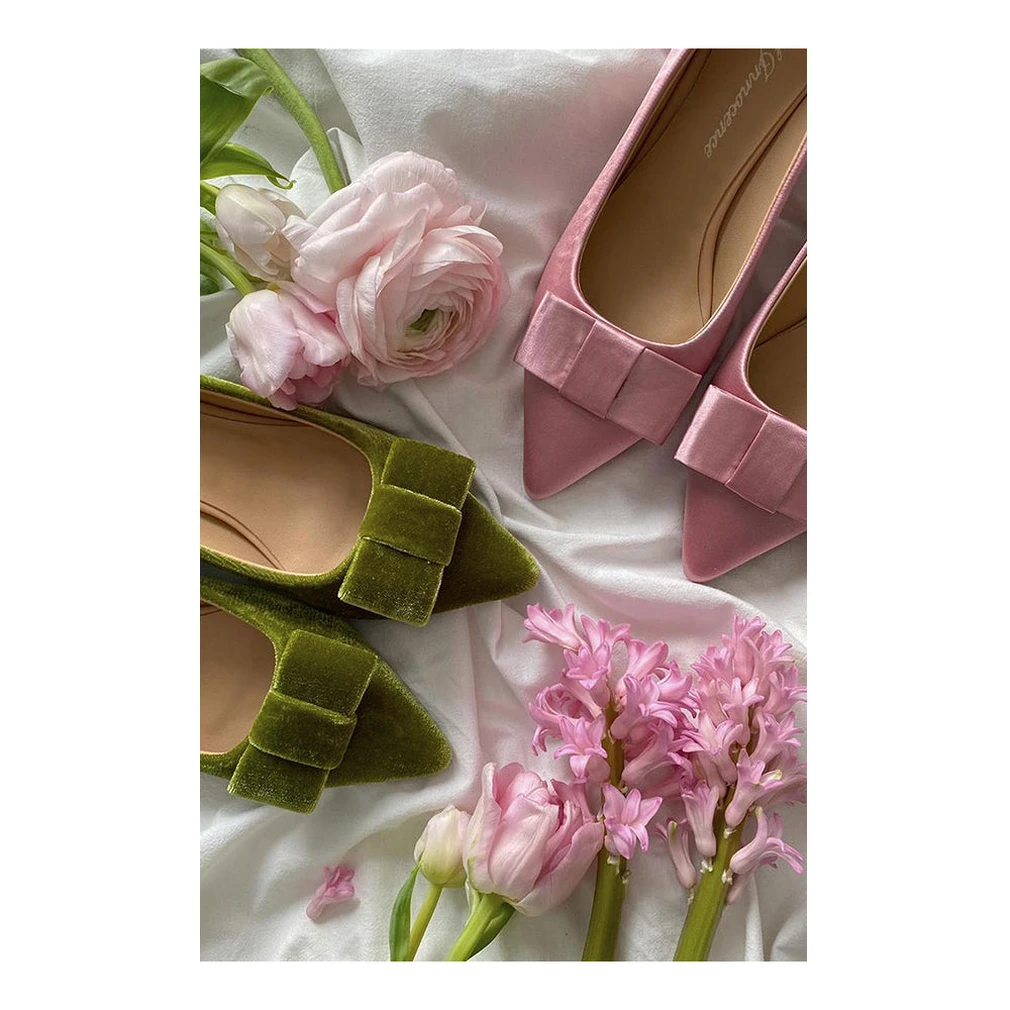 Бархатные лодочки Jacqueline — те самые туфли, которые должны быть в гардеробе каждой женщины, как и маленькое черное платье. Эта модель никогда не потеряет своей актуальности и будет одинаково уместна и во время светского мероприятия с коктейльным платьем, и во время бизнес-встречи, моментально сделав изысканным даже самый базовый образ! И все это благодаря крошечной и очень изящной 4.5 см шпильке, сдержанному прямоугольному банту и мягчайшему бархату изумительного зеленого оттенка.