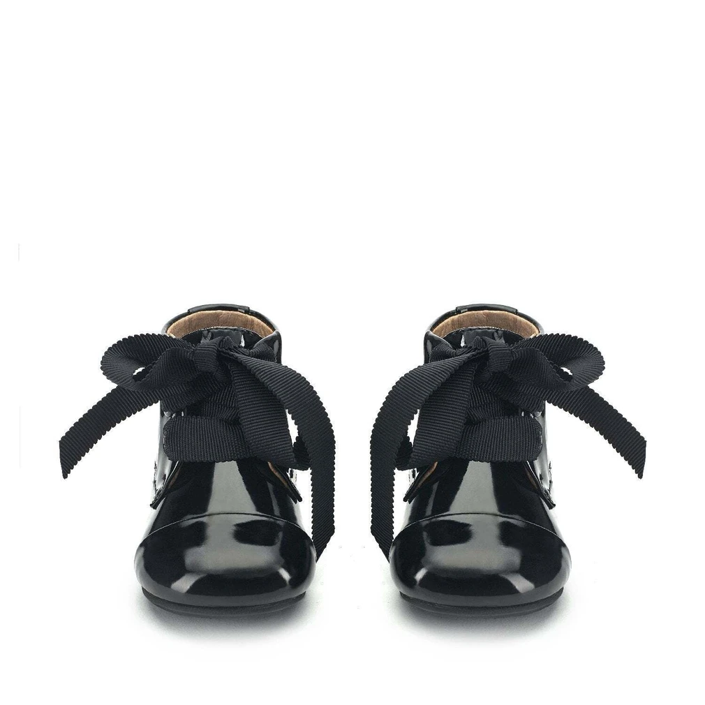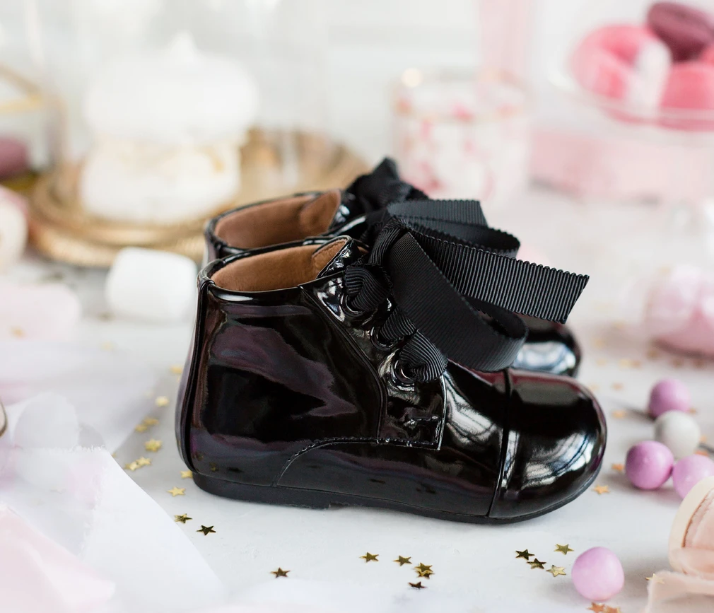 Идеальный выбор для маленькой модницы — это элегантные и утонченные черные ботиночки Jane. Они изготовлены из лакированной кожи и декорированы изящной лентой в цвет обуви. Мы рекомендуем носить их как с джинсами, так и c элегантным платьем.