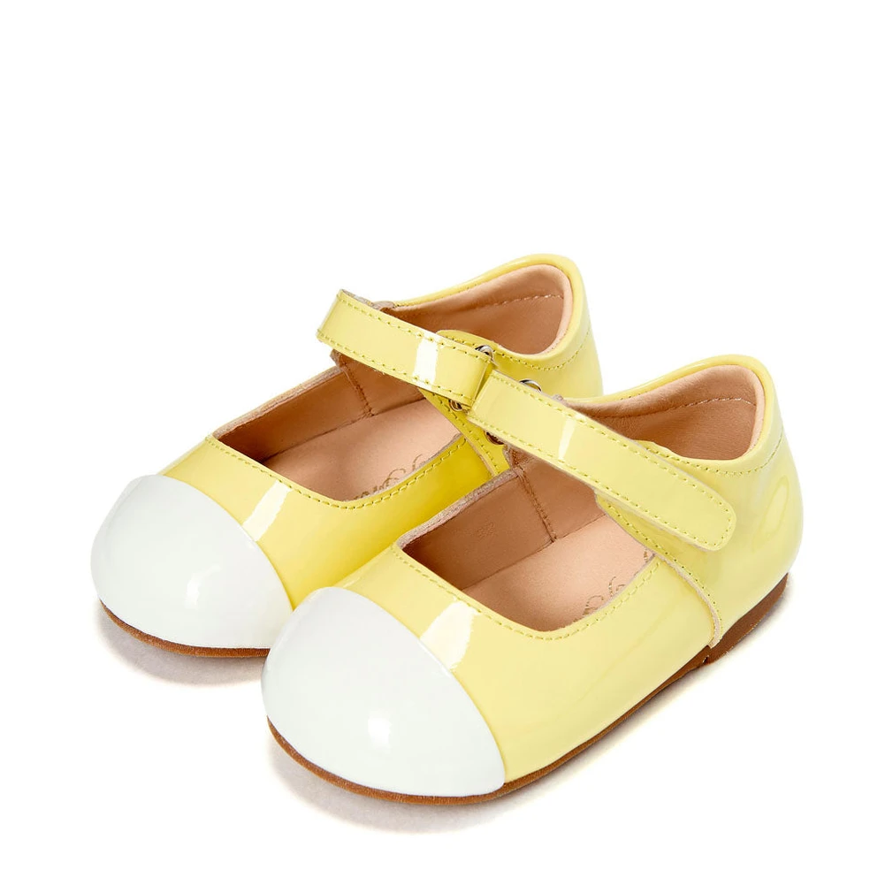 Желтые лакированные туфельки Jenny — это мини-версия наших классических ботиночек Jane для самых маленьких. Это идеальная обувь для первых шагов. Жесткая и высокая пятка, прочные ремешки на липучках и чудесный дизайн туфелек делают эту модель одной из самых желанных для малышек, которые только начинают или учатся ходить. Рекомендуем носить их с легкими платьями и модным пальто.