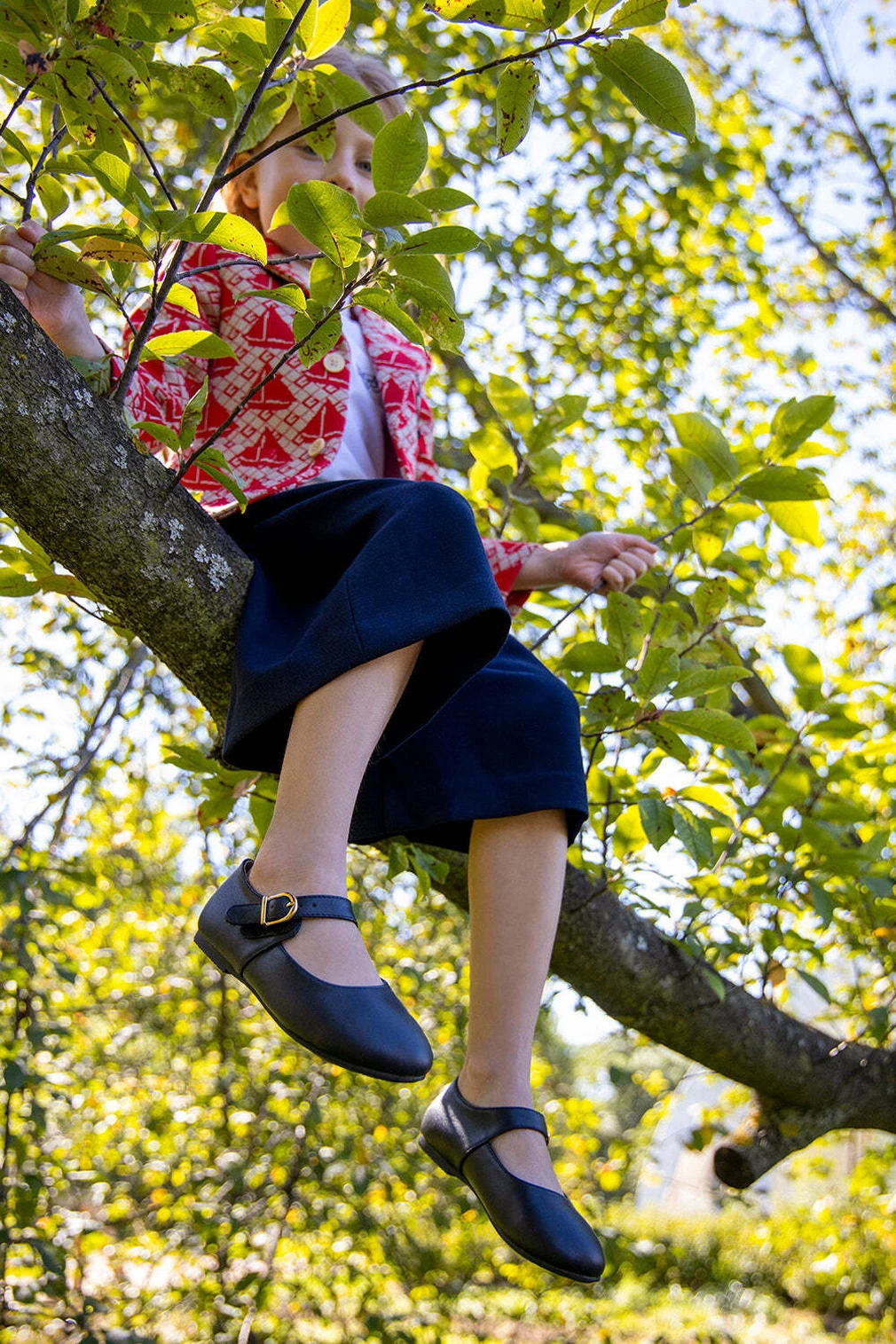 Мягкая натуральная кожа с матовым эффектом, закрытый нос, диагональный ремешок и металлическая пряжечка — наши туфли Juni относятся к той обуви, которую отличают универсальность и комфорт. Туфельки застегиваются на удобный ремешок с застежкой велькро. Они будут уместны и пригодятся вашему ребенку в абсолютно любой ситуации: будь то поход в школу или прогулка по парку.