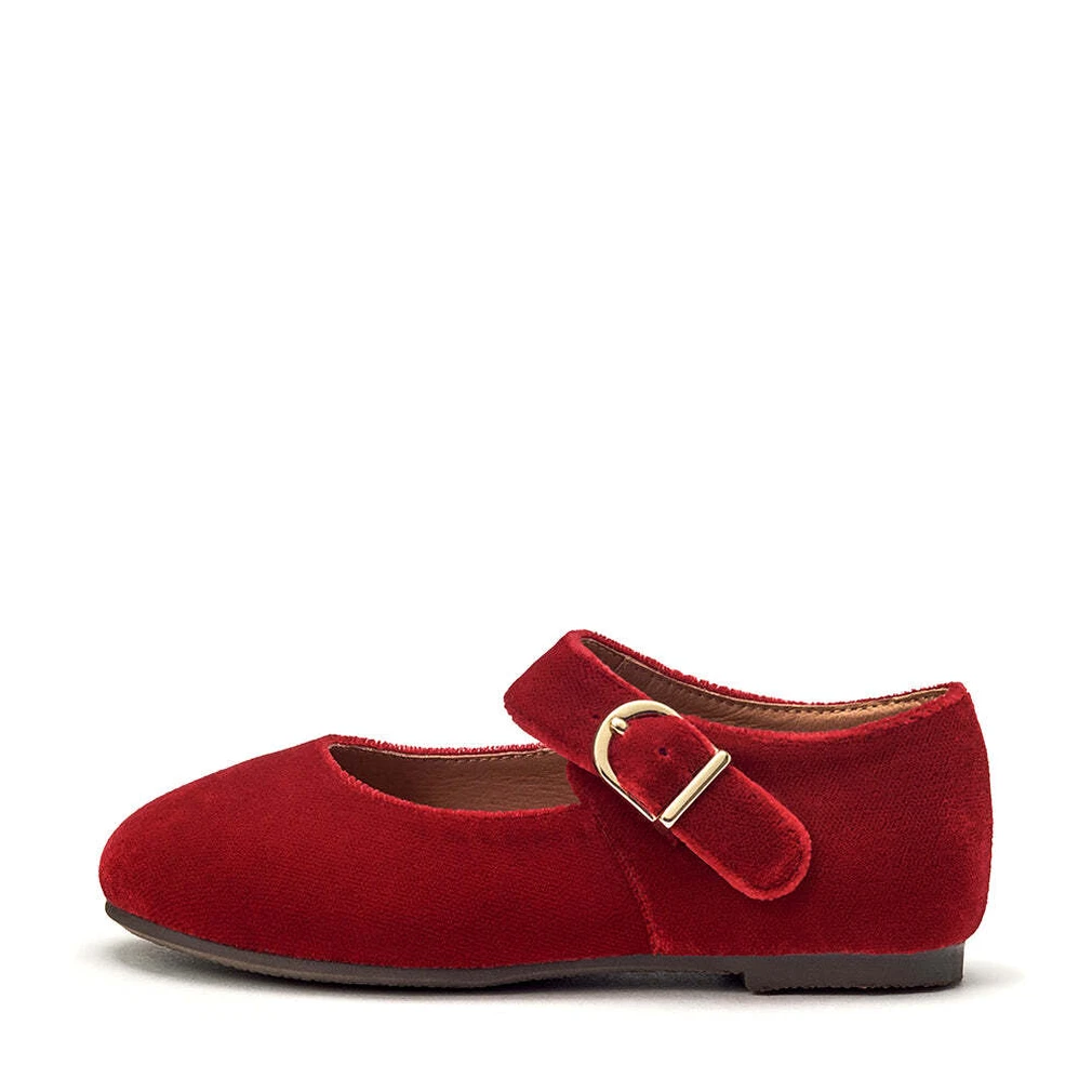 Мягкий бархат, диагональный ремешок и золотая пряжечка — наши туфли Juni Velvet относятся к той обуви, которую отличают простота и элегантность. Туфельки застегиваются на удобный ремешок с застежкой велькро. Они будут уместны в любой ситуации: будь то важный концерт или новогодняя вечеринка.