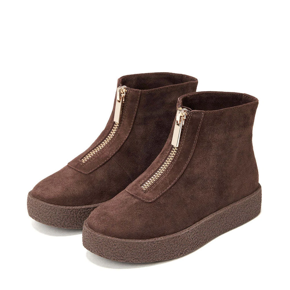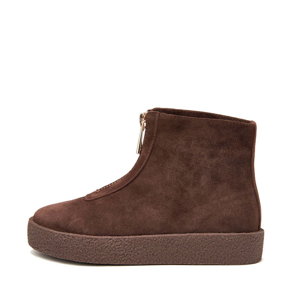 Сделанные из натуральной замши ботинки Leah точно не оставят вас равнодушными. Подкладка и стелька из натуральной кожи в сочетании с толстой рифленой подошвой обеспечат максимальный комфорт и тепло. Ботинки Leah с модной и очень удобной молнией спереди будут идеально смотреться как с платьями, так и с узкими джинсами.