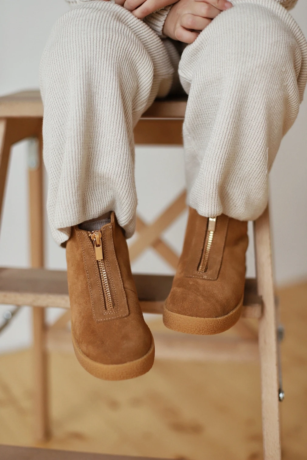 Сделанные из натуральной замши песочного оттенка ботинки Leah точно не оставят вас равнодушными. Подкладка и стелька из натуральной овчины в сочетании с толстой рифленой подошвой обеспечат максимальный комфорт и тепло. Ботинки Leah с модной и очень удобной молнией спереди будут идеально смотреться как с платьями, так и с узкими джинсами.