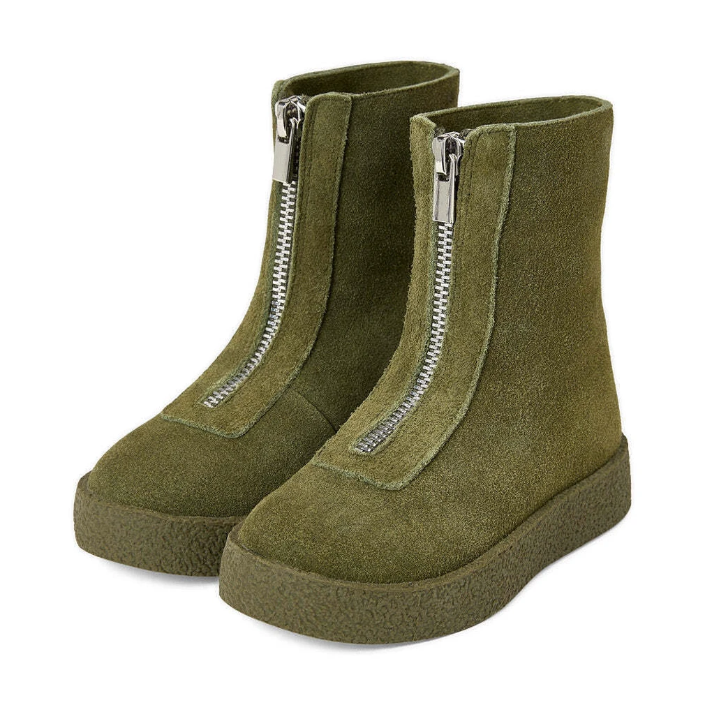 Сделанные из натуральной замши сапоги Leah точно не оставят вас равнодушными. Подкладка и стелька из натуральной овчины в сочетании с толстой рифленой подошвой обеспечат максимальный комфорт и тепло. Сапожки Leah с модной и очень удобной молнией спереди будут идеально смотреться как с платьями, так и с узкими джинсами.