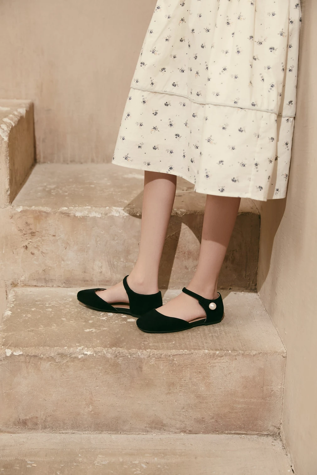 До чего же они прекрасны — эти открытые туфельки из замши в черном и бежевом цветах. Украшенные маленькой декоративной жемчужиной, они идеально смотрятся на ножке и прекрасно подойдут для жаркого лета в городе, прогулок по скверам и паркам, походов в музеи и вечеринок под открытым небом.