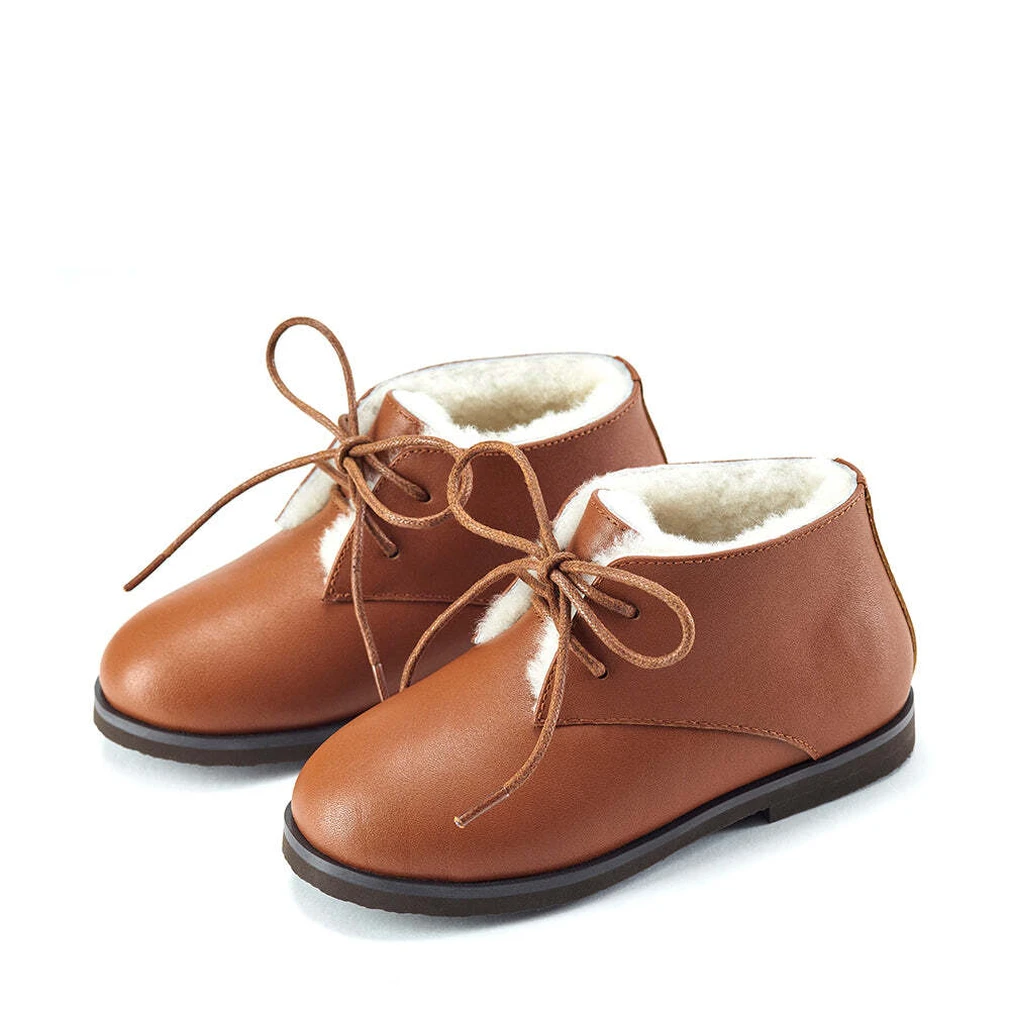 Стильные и удобные кожаные ботиночки Lora 2.0 — наши фавориты. Сшитая из мягкой натуральной кожи, со 100% овчиной внутри и на толстой, рифленой подошве, эта модель прекрасно подойдет как для прогулок, так и для особых случаев. Декорированные шнуровкой эти ботиночки будут чудесно смотреться с платьями, юбками и теплыми колготками.