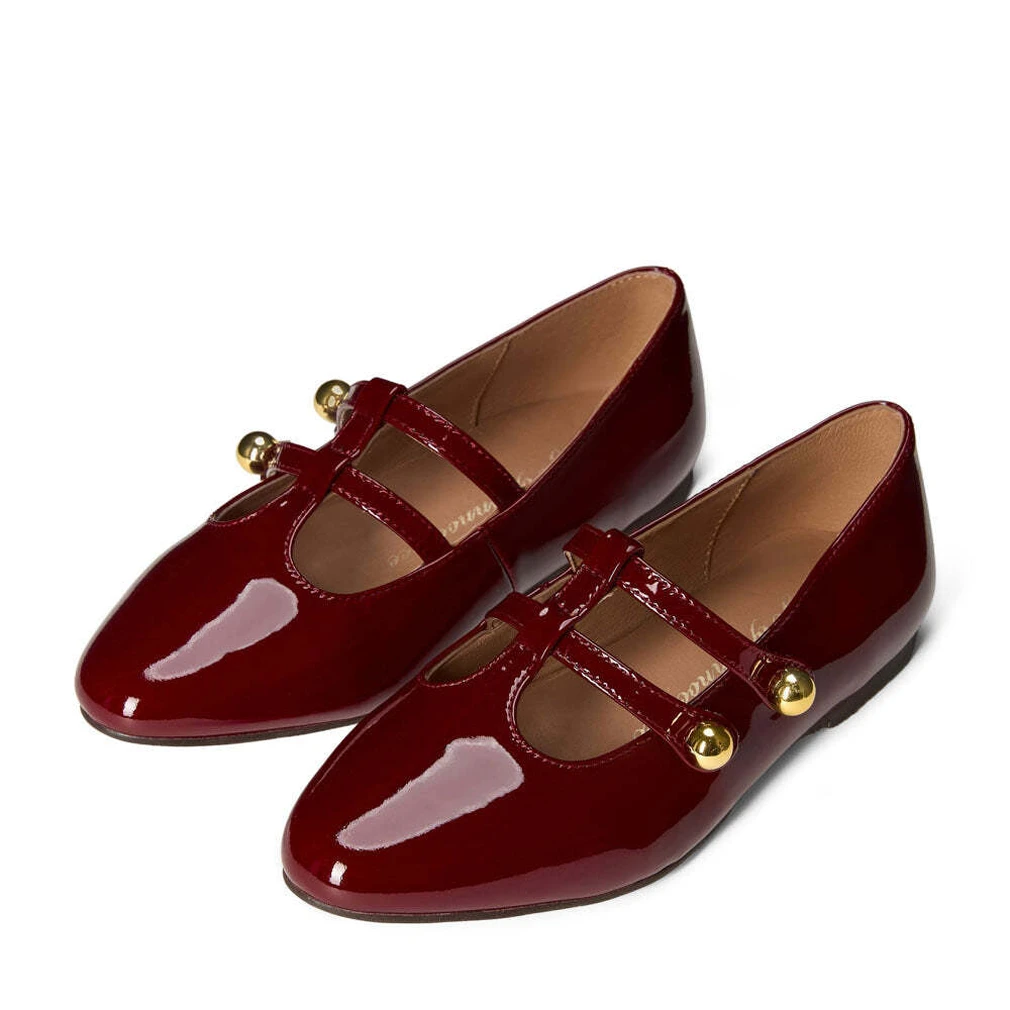 Эти элегантные лакированные туфельки Mary Jane с зауженным носиком подойдут и для особенных моментов, и для обычных школьных будней. Маленькие золотые пуговки-бусинки выполняют декоративную функцию и дополняют тонкие ремешки.